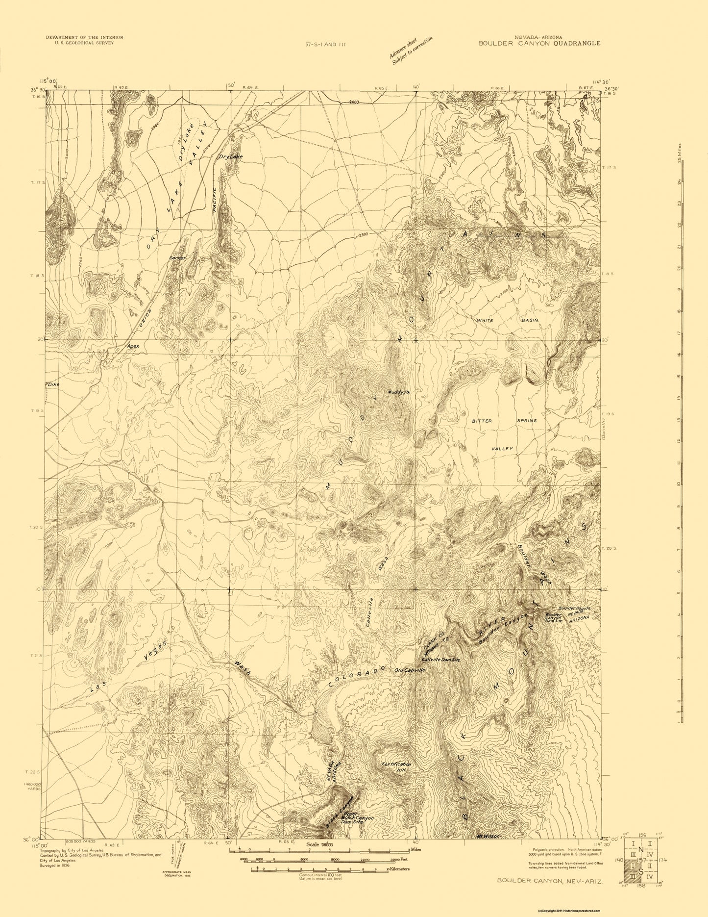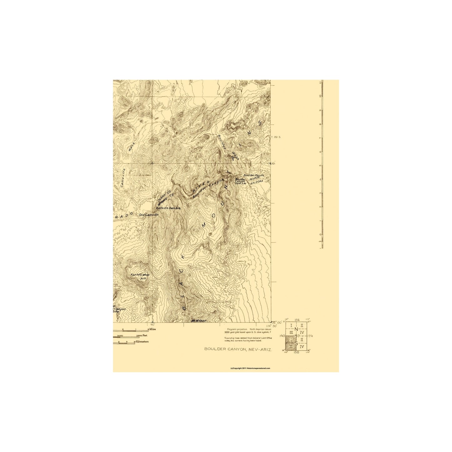 Topographical Map - Boulder Canyon Nevada, Arizona Quad - USGS 1926 - This is an exquisite full-color Reproduction printed on high-quality gloss paper, art paper or canvas.