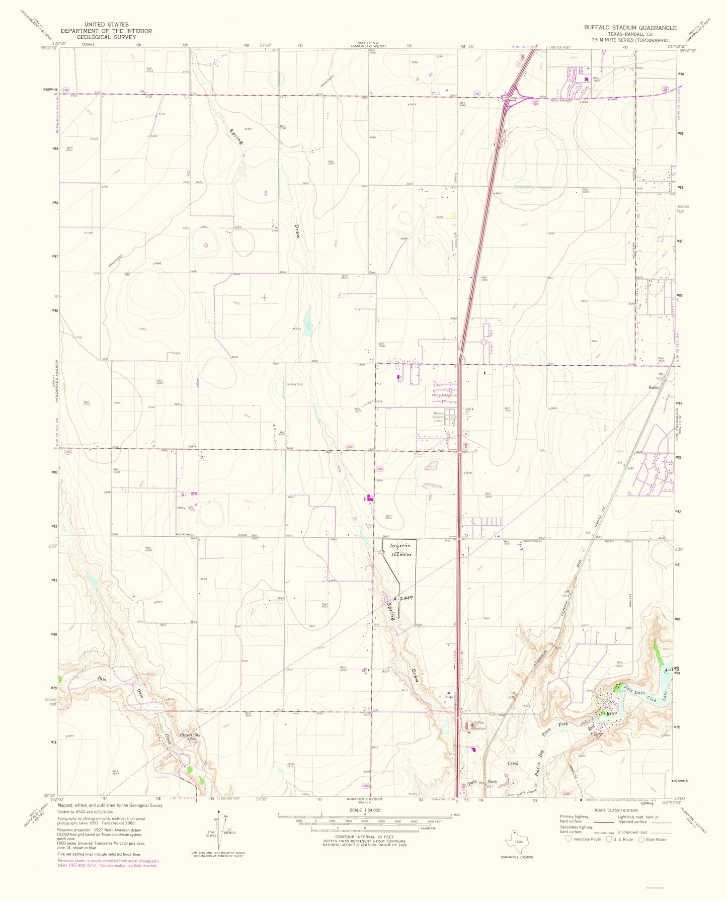 Topographical Map Print - Buffalo Stadium Texas Quad - USGS 1975 - This is an exquisite full-color Reproduction printed on high-quality gloss paper, art paper or canvas.