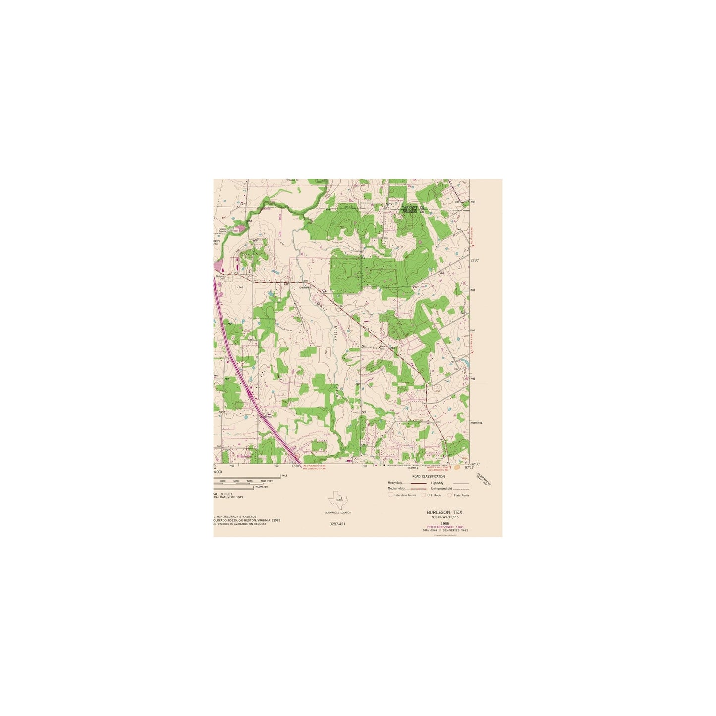 Historical Topographic Maps - Burleson Texas Quad - USGS 1955 - This is an exquisite full-color Reproduction printed on high-quality gloss paper, art paper or canvas.