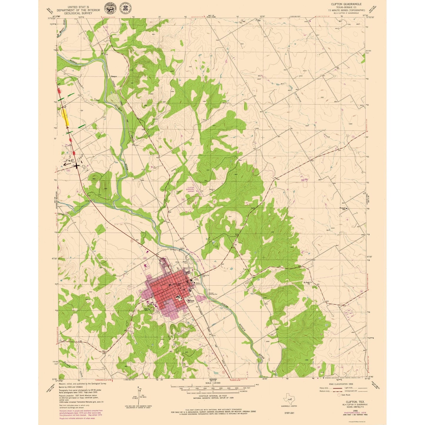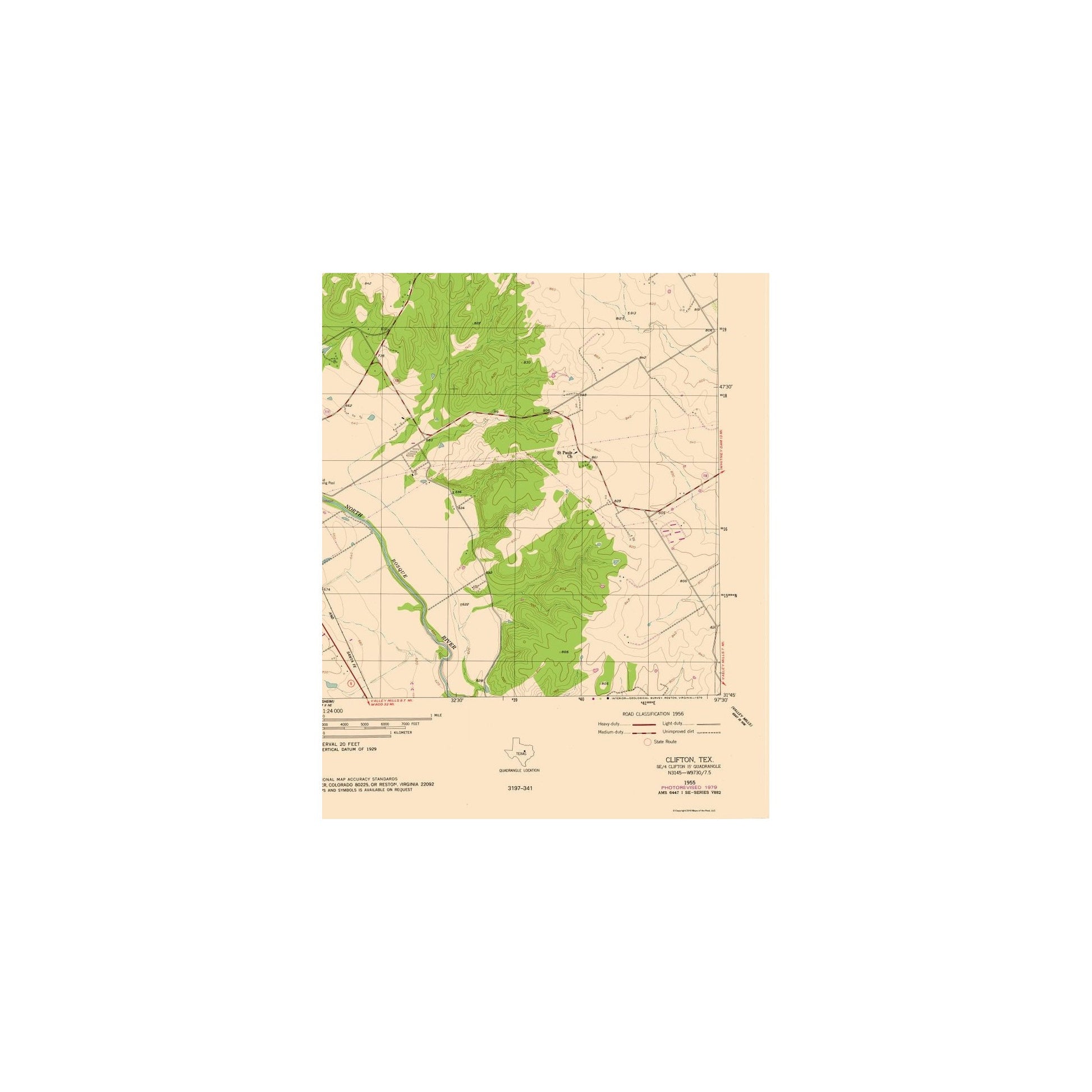 Historical Topographic Maps - Clifton Texas Quad - USGS 1955 - This is an exquisite full-color Reproduction printed on high-quality gloss paper, art paper or canvas.