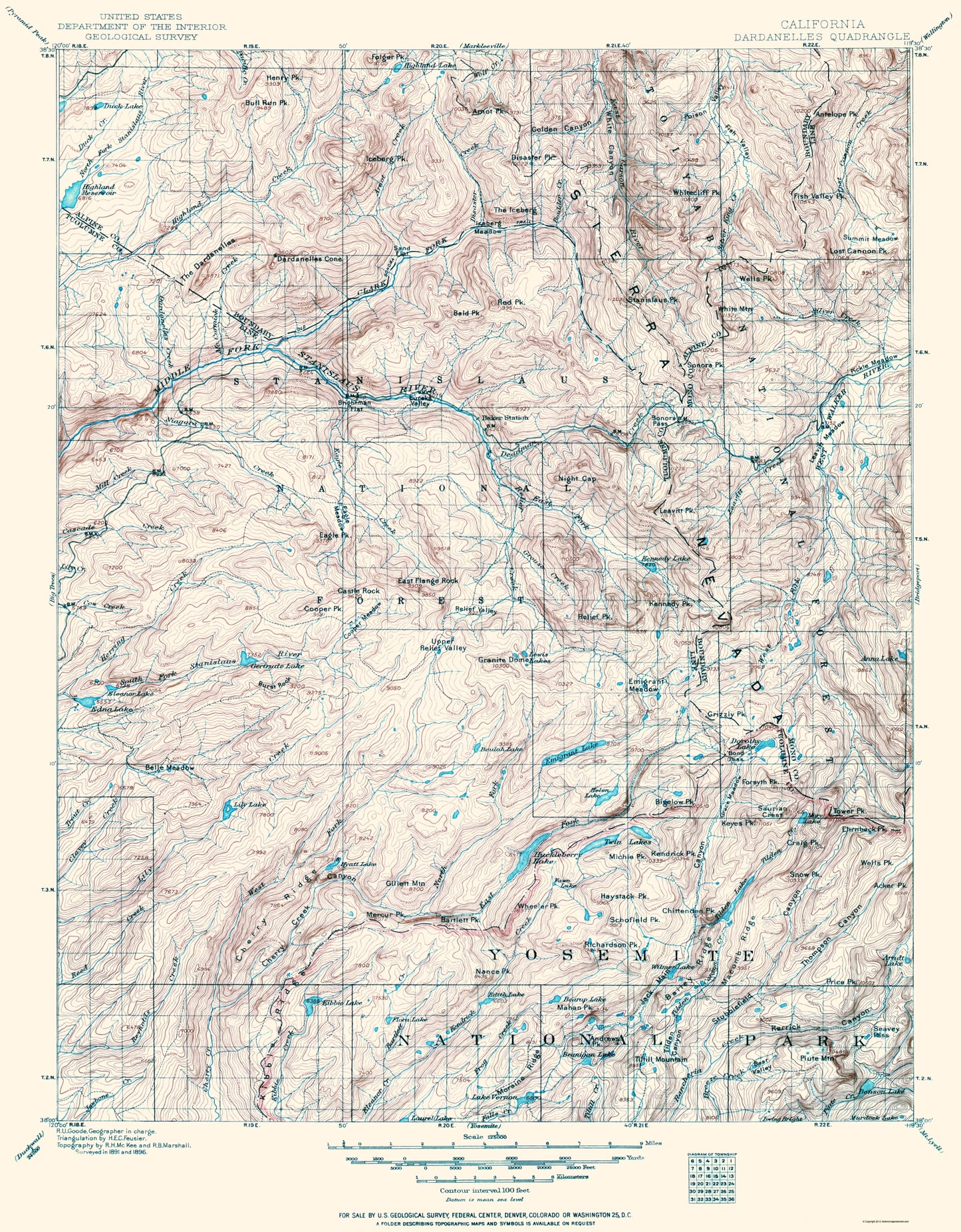Topographical Map Print - Dardanelles California Quad - USGS 1896 - This is an exquisite full-color Reproduction printed on high-quality gloss paper, art paper or canvas.
