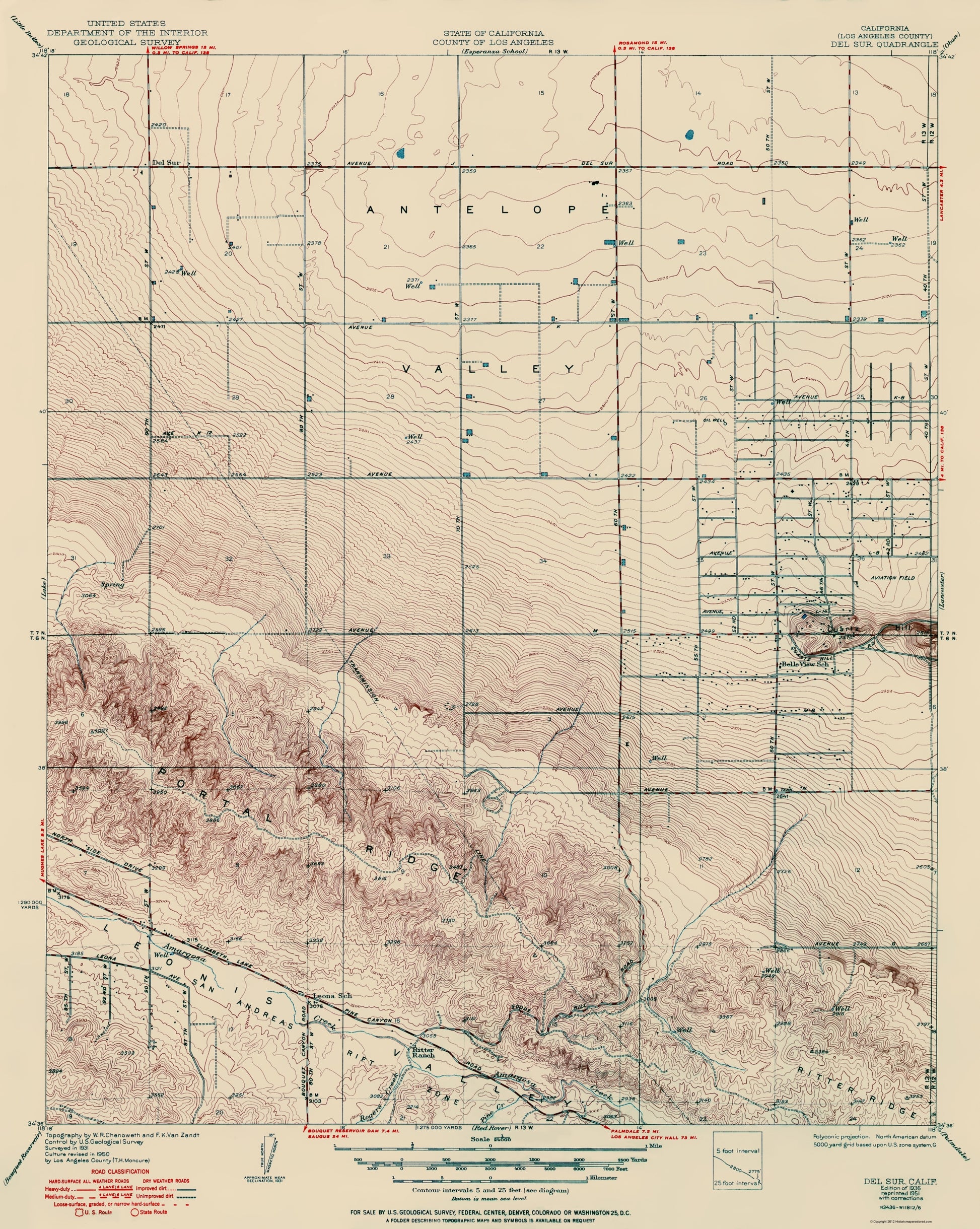 Topographical Map - Del Sur California Quad - USGS 1937 - 23 x 28.84 - Vintage Wall Art