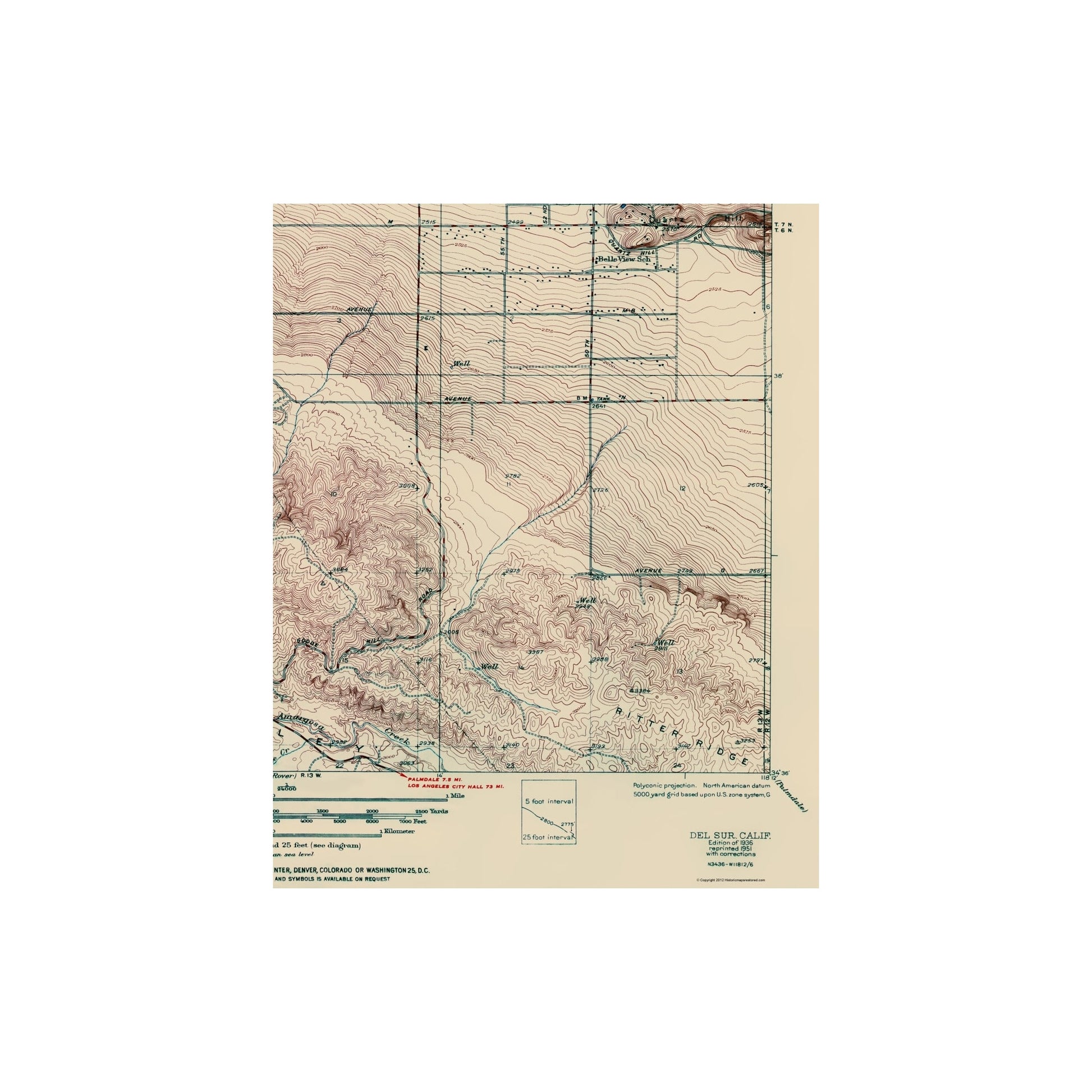 Topographical Map Print - Del Sur California Quad - USGS 1937 - This is an exquisite full-color Reproduction printed on high-quality gloss paper, art paper or canvas.