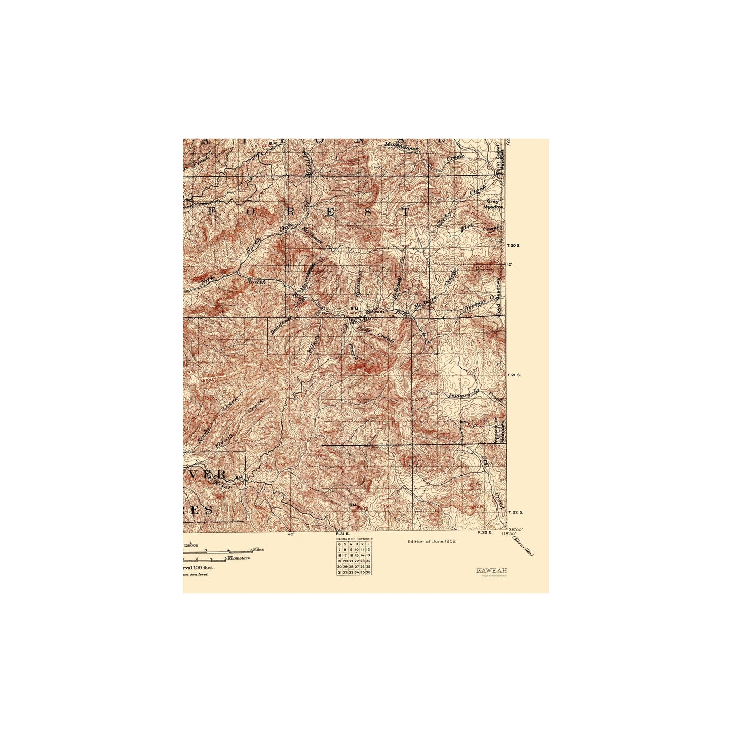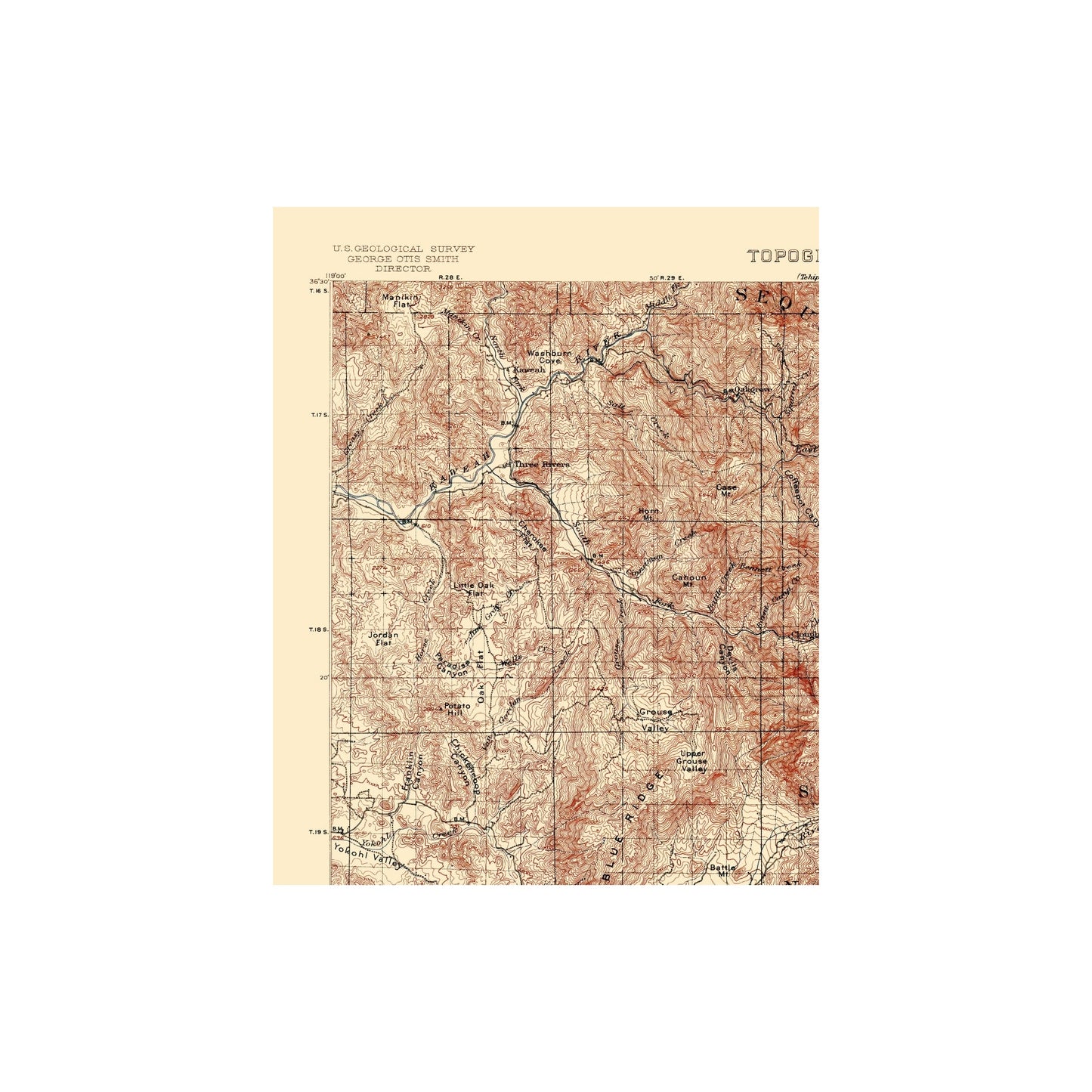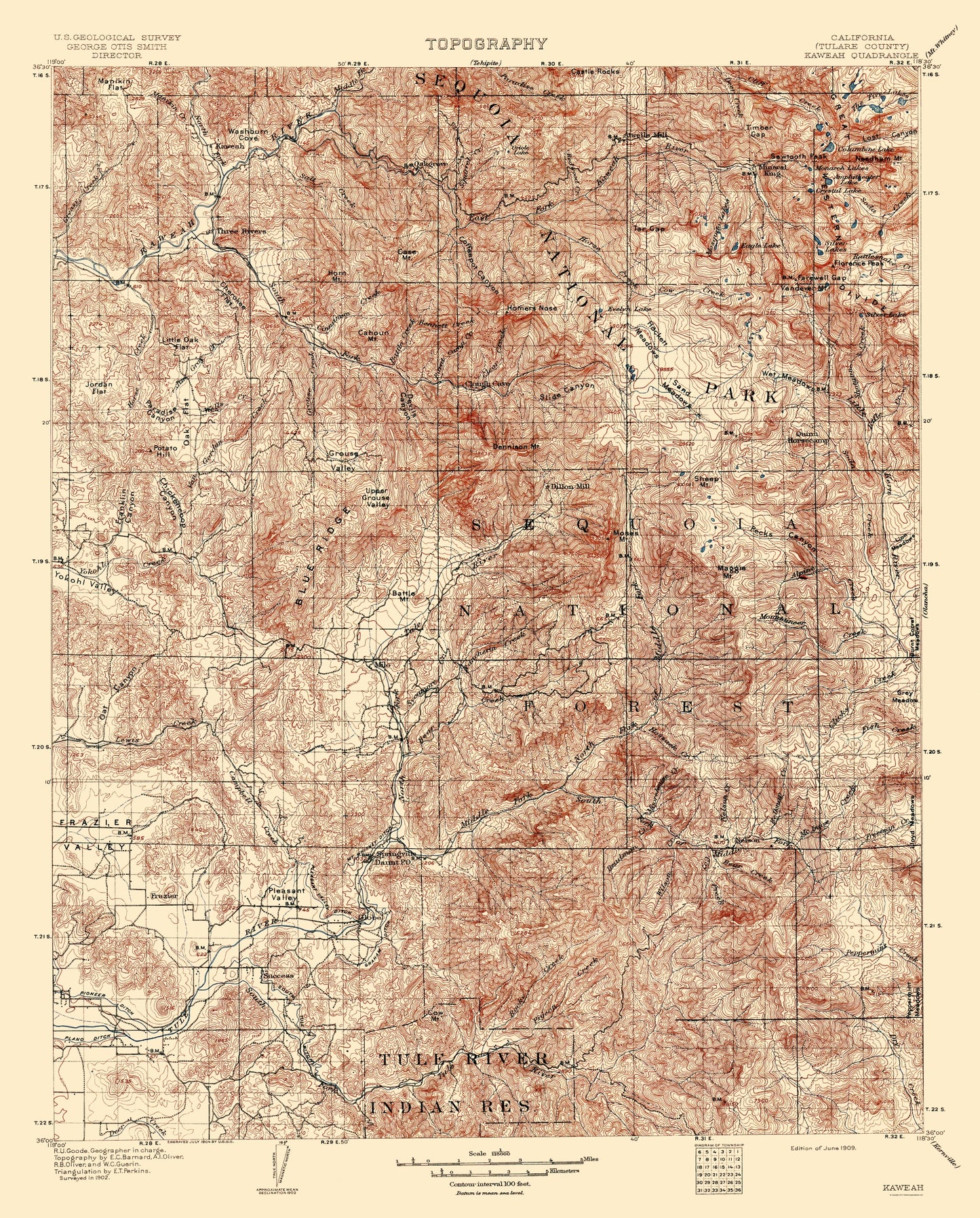 Topographical Map Print - Kaweah California Quad - USGS 1909 - This is an exquisite full-color Reproduction printed on high-quality gloss paper, art paper or canvas.