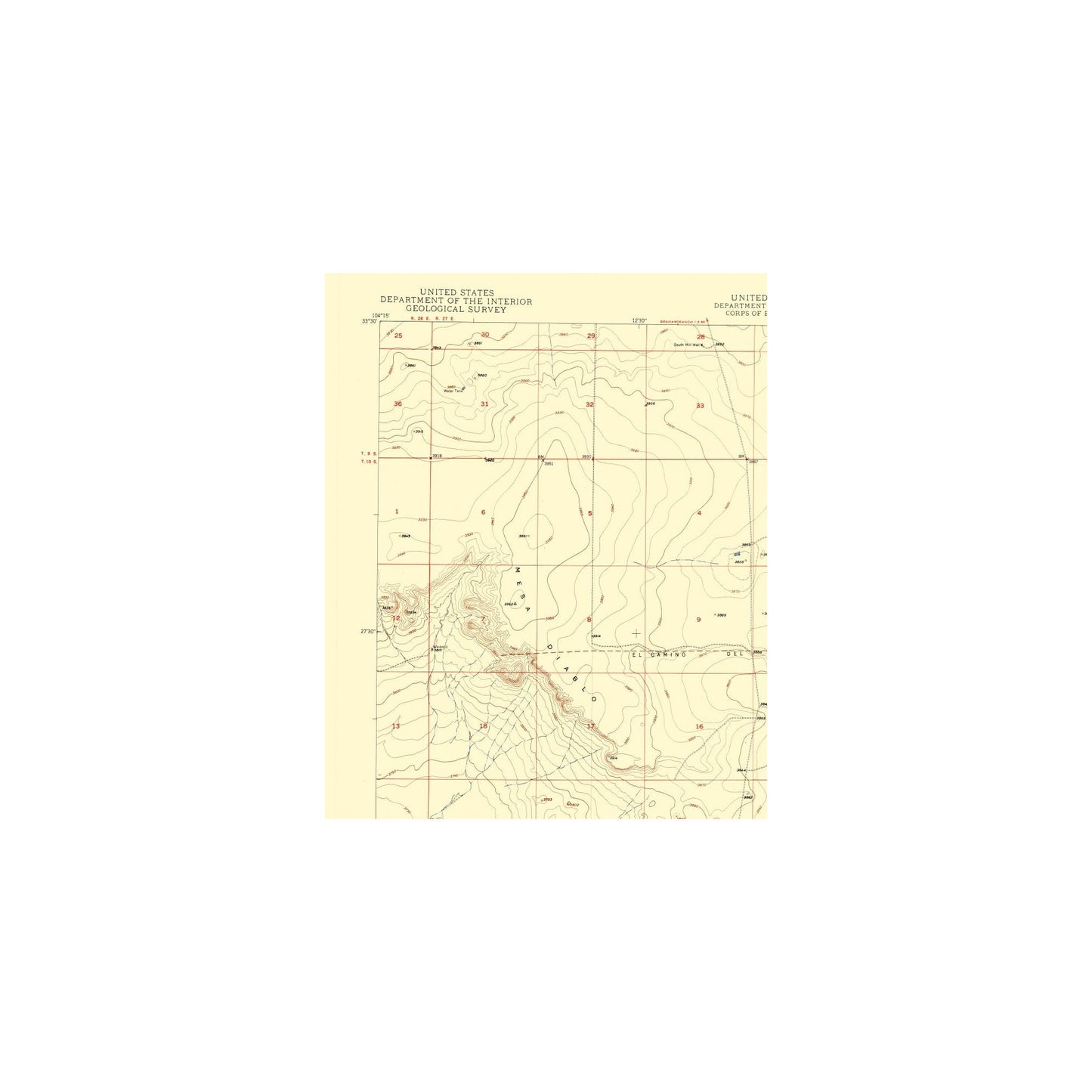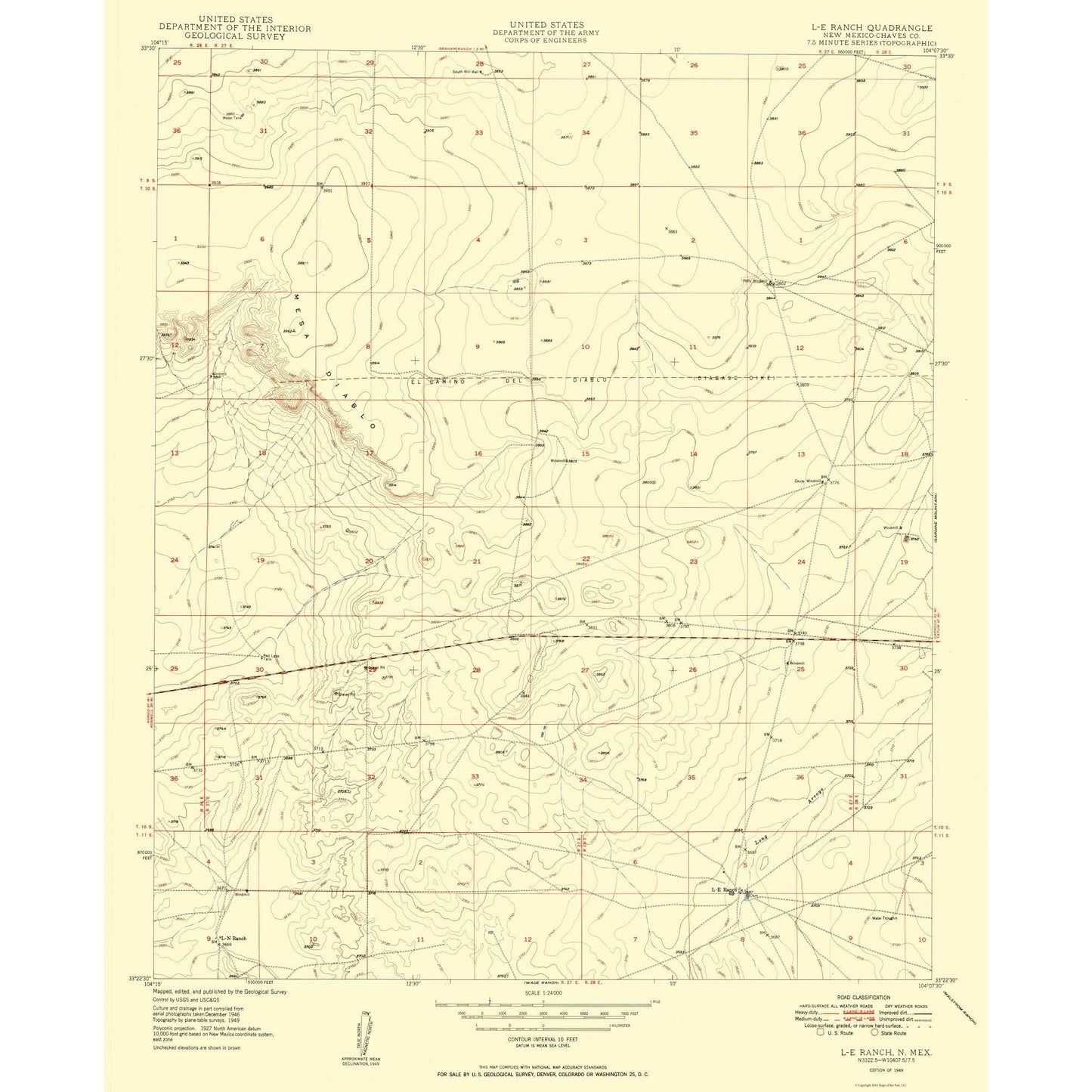 Historical Topographic Maps - L-E Ranch Chaves County New Mexico Quad - USGS 1949 - This is an exquisite full-color Reproduction printed on high-quality gloss paper, art paper or canvas.
