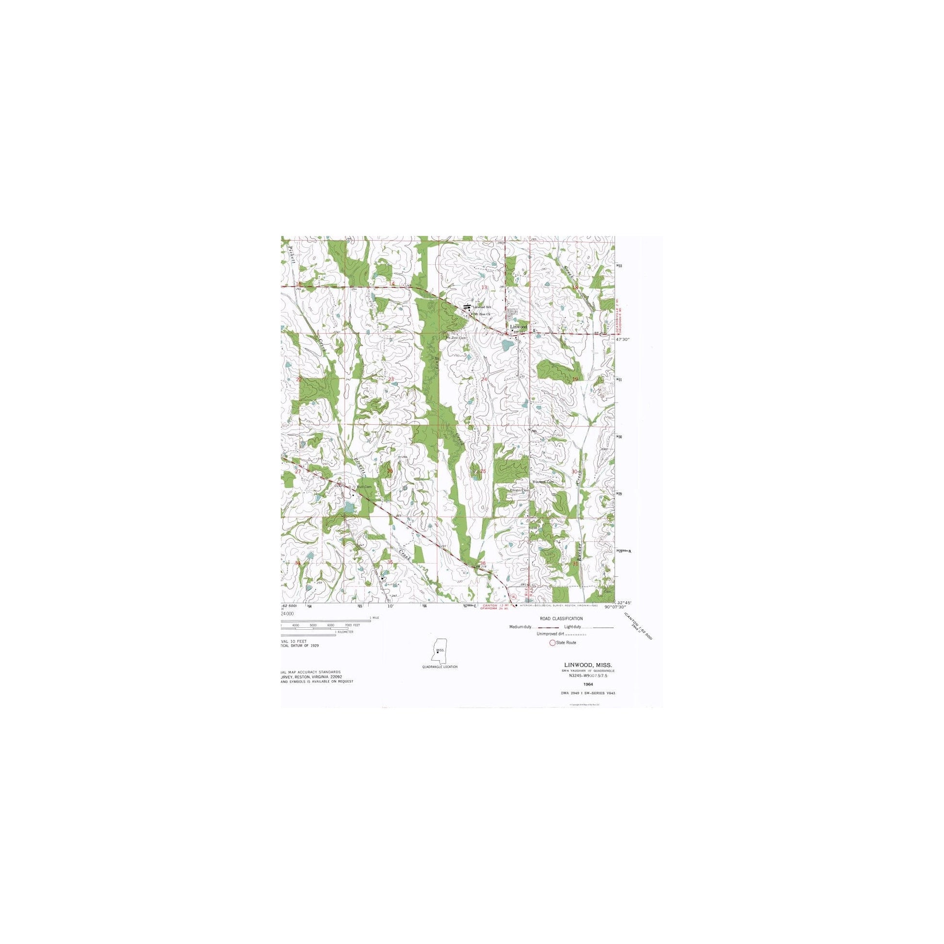 Historical Topographic Maps - Linwood Mississippi Quad - USGS 1964 - This is an exquisite full-color Reproduction printed on high-quality gloss paper, art paper or canvas.