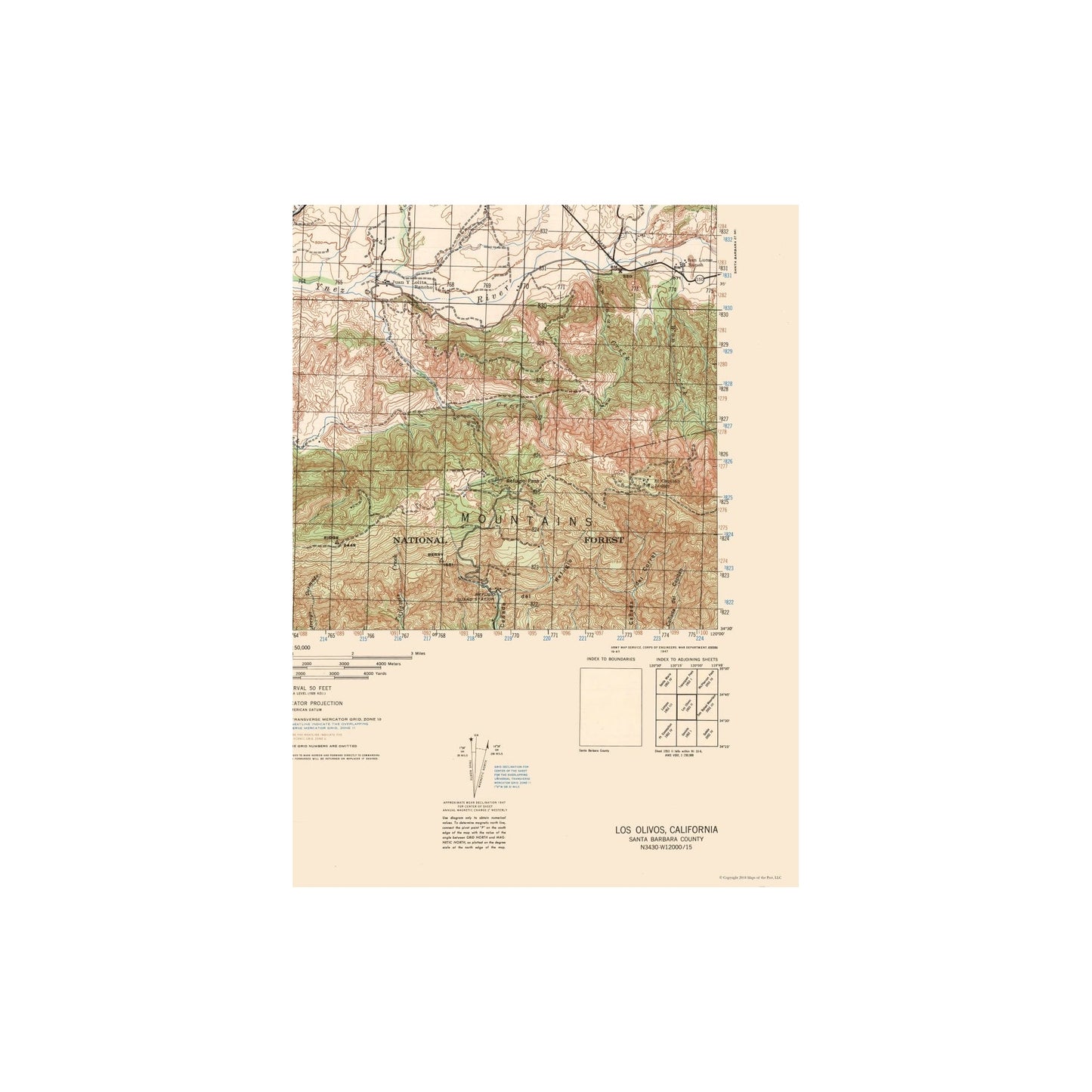 Topographical Map - Los Olivos Sheet - Army 1942 - This is an exquisite full-color Reproduction printed on high-quality gloss paper, art paper or canvas.