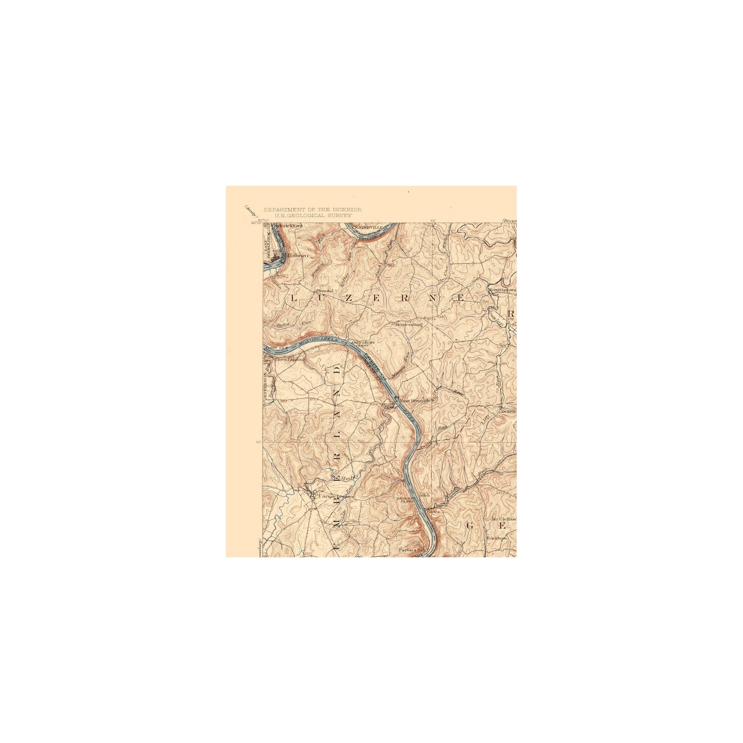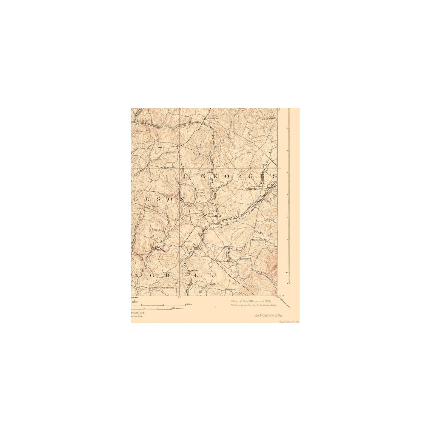Historical Topographic Maps - Masontown Pennsylvania Quad - USGS 1903 - This is an exquisite full-color Reproduction printed on high-quality gloss paper, art paper or canvas.