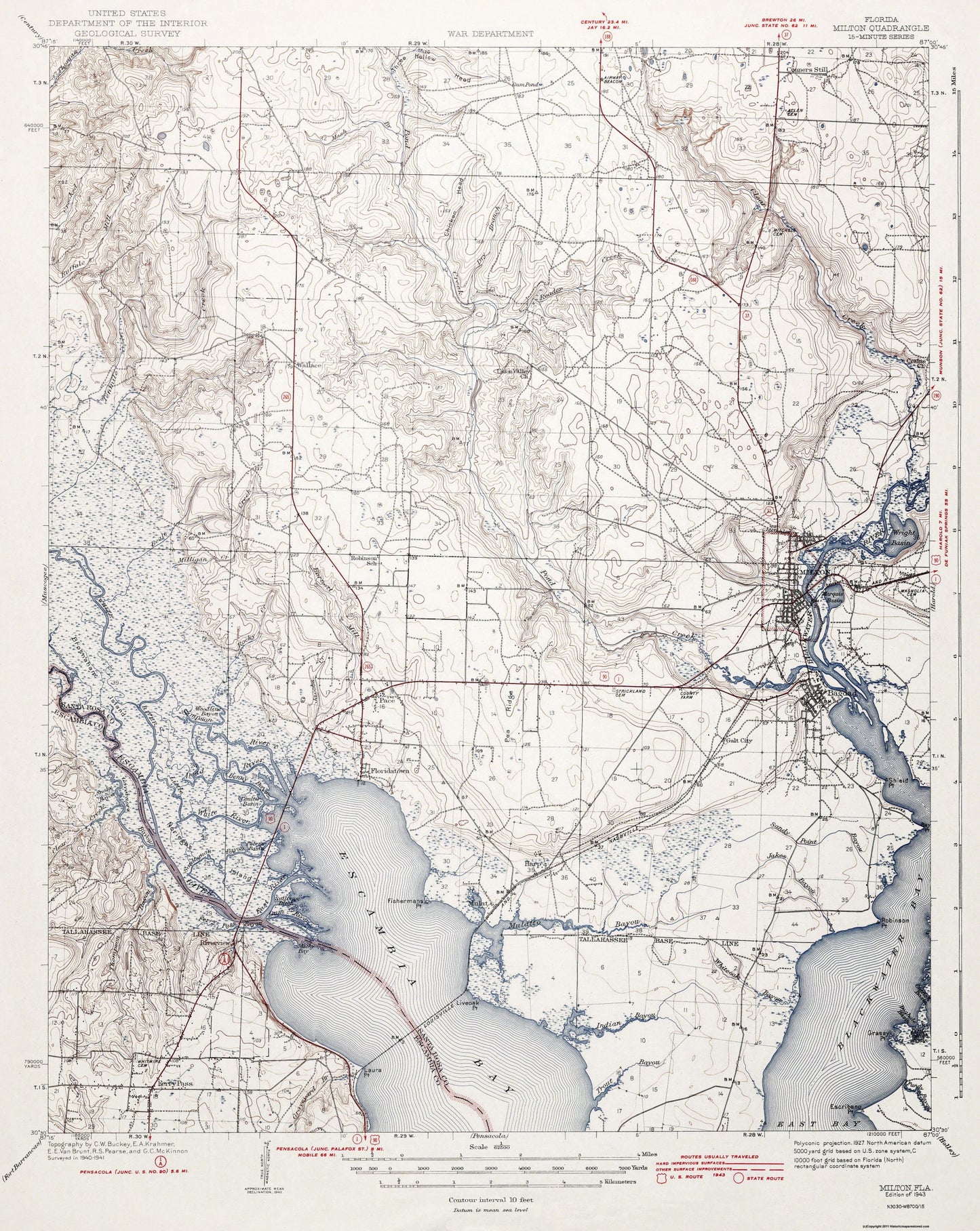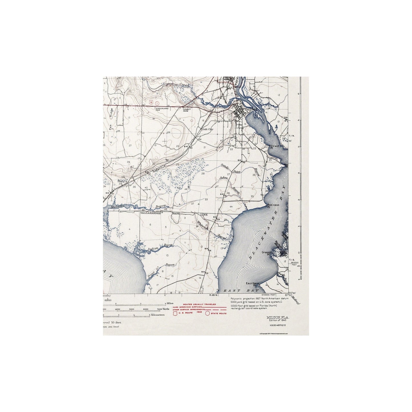 Topographical Map Print - Milton Florida Quad - USGS 1943 - This is an exquisite full-color Reproduction printed on high-quality gloss paper, art paper or canvas.