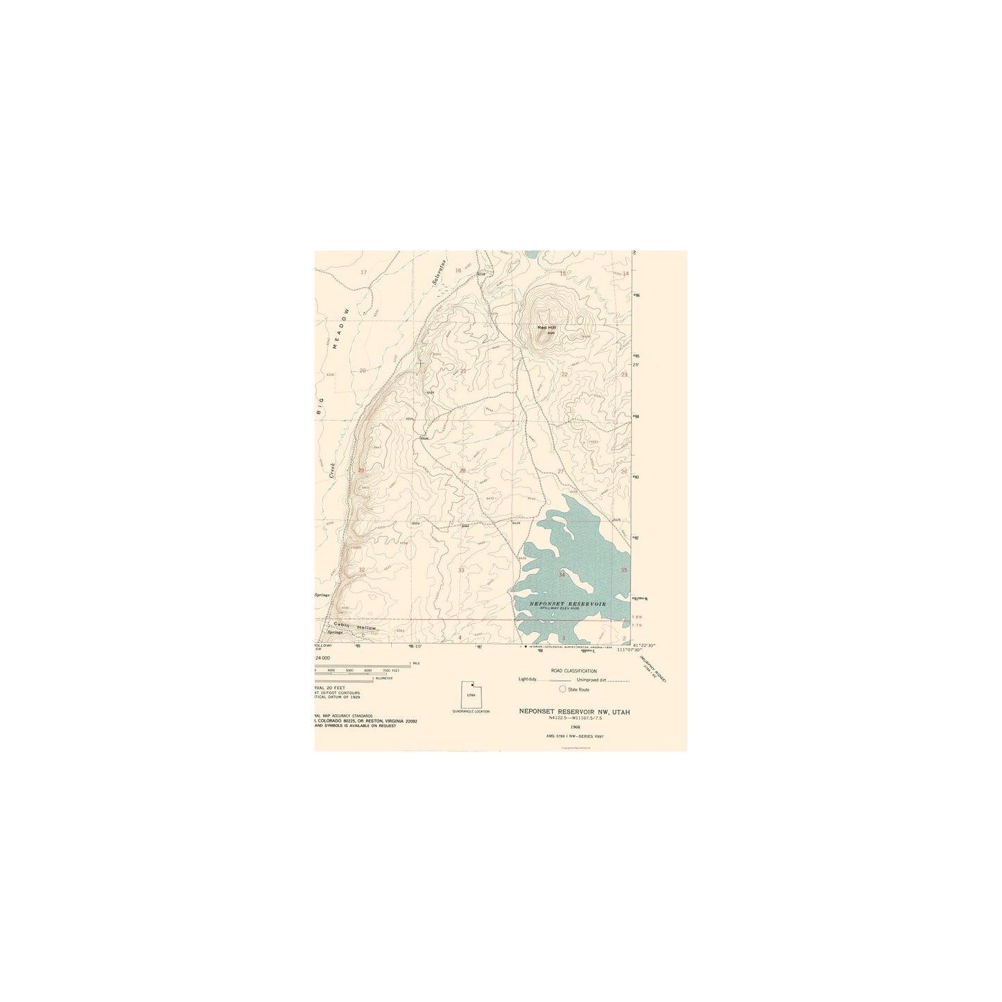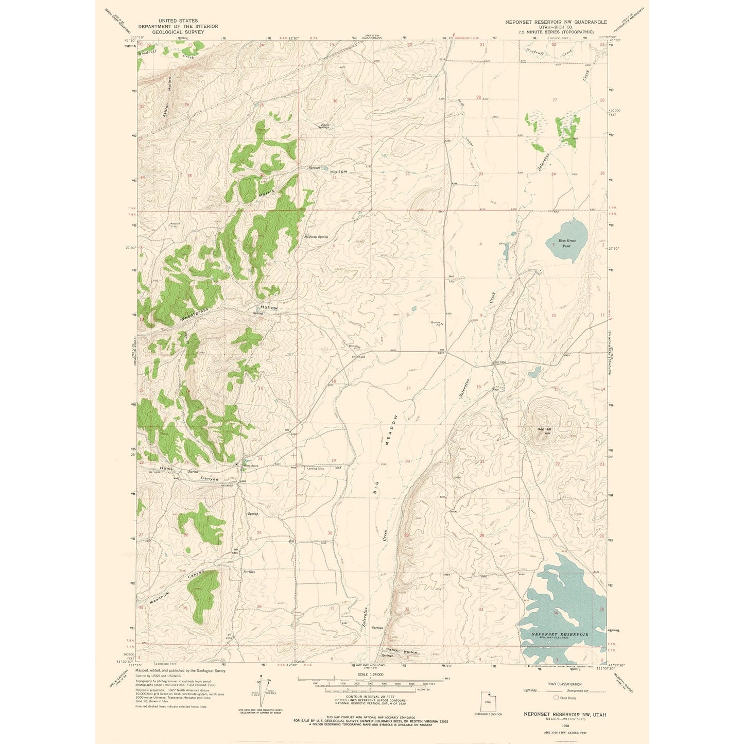 Historical Topographic Maps - North West Neponset Reservoir Utah Quad - USGS 1968 - This is an exquisite full-color Reproduction printed on high-quality gloss paper, art paper or canvas.