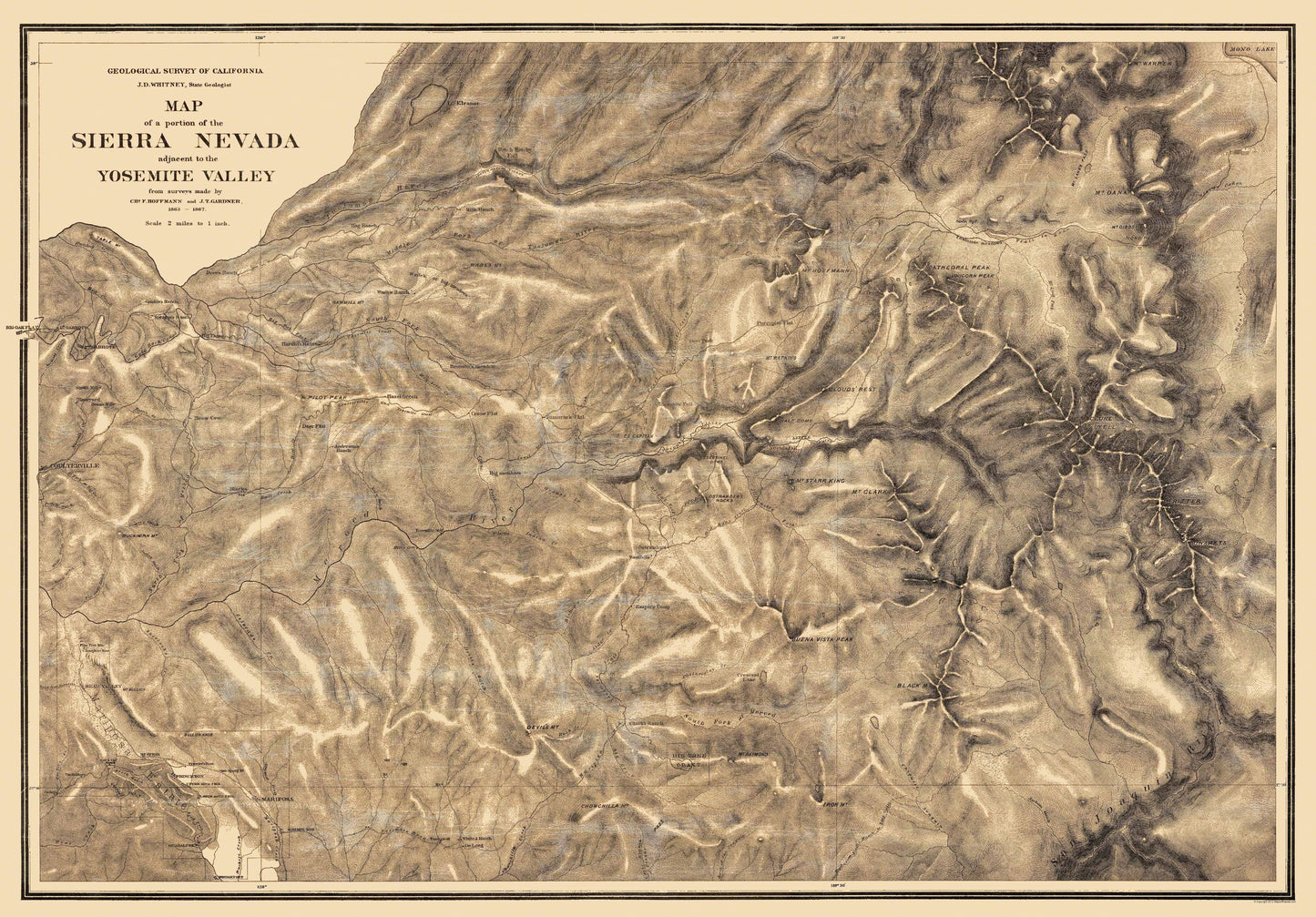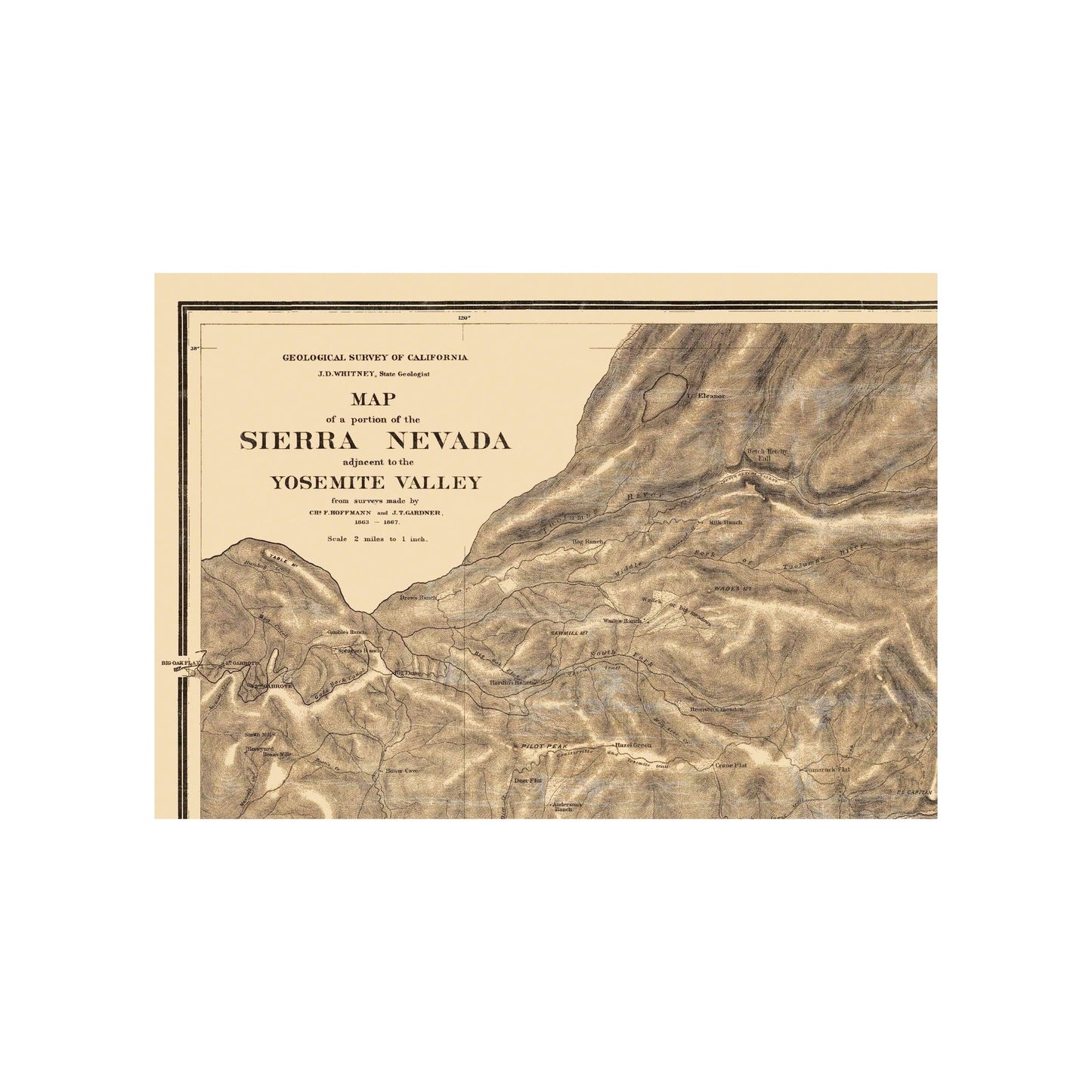 Topographical Map - Part of Sierra Nevada California - Whitney 1867 - This is an exquisite full-color Reproduction printed on high-quality gloss paper, art paper or canvas.