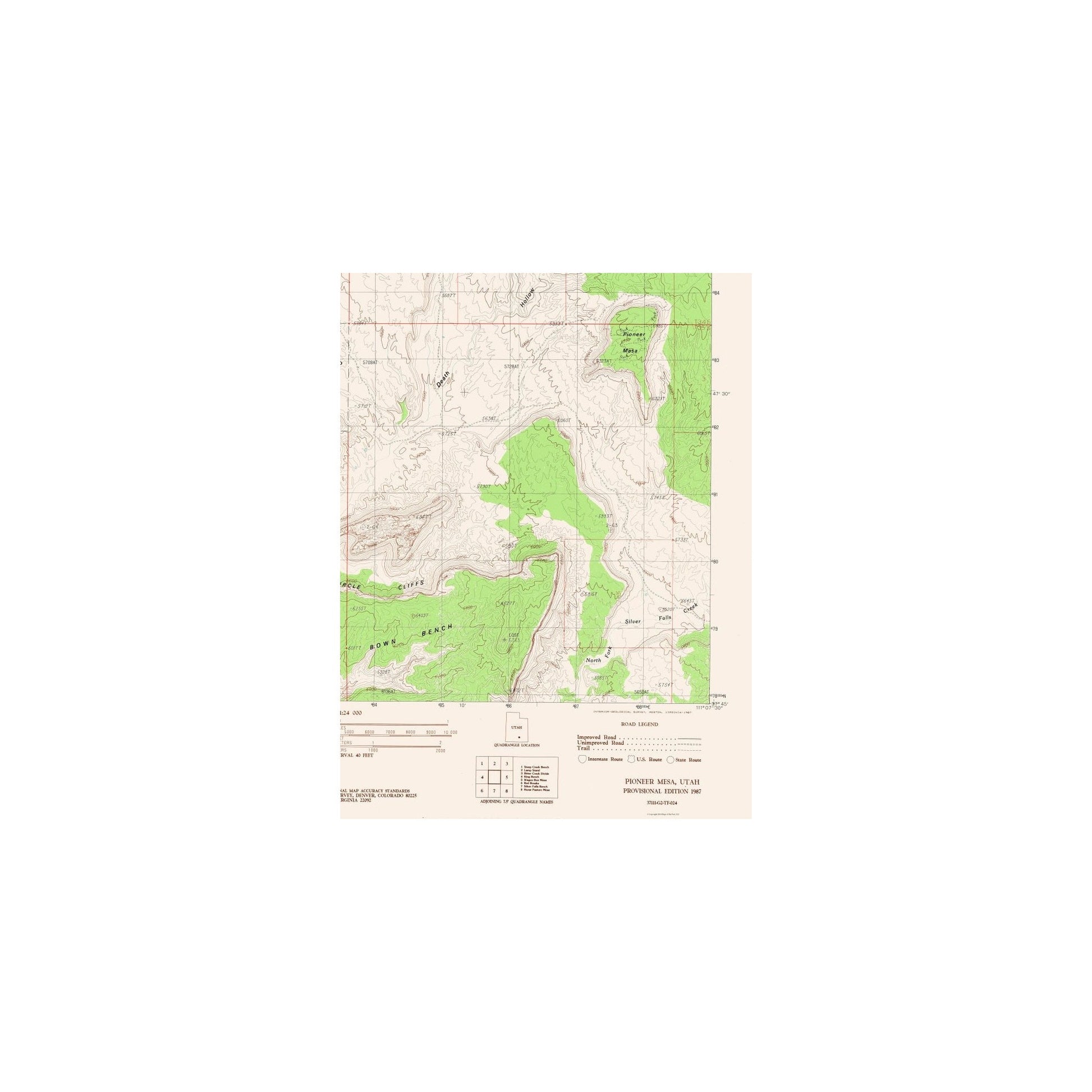 Historical Topographic Maps - Pioneer Mesa Utah Quad - USGS 1987 - This is an exquisite full-color Reproduction printed on high-quality gloss paper, art paper or canvas.