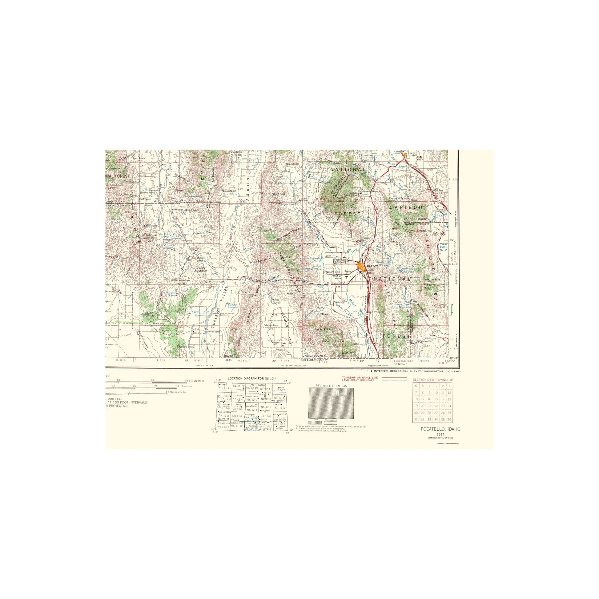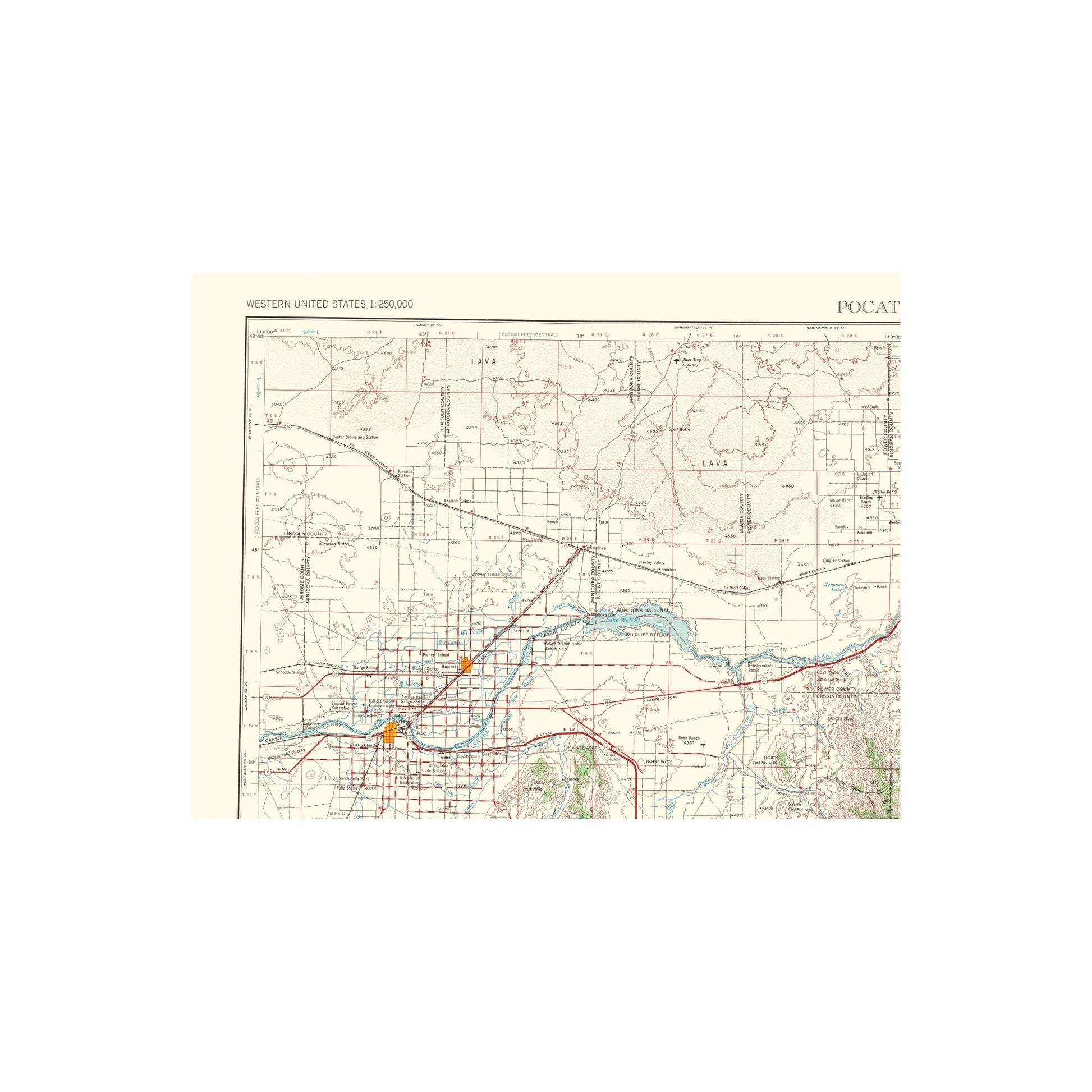 Topographical Map Print - Pocatello Idaho - USGS 1963 - This is an exquisite full-color Reproduction printed on high-quality gloss paper, art paper or canvas.