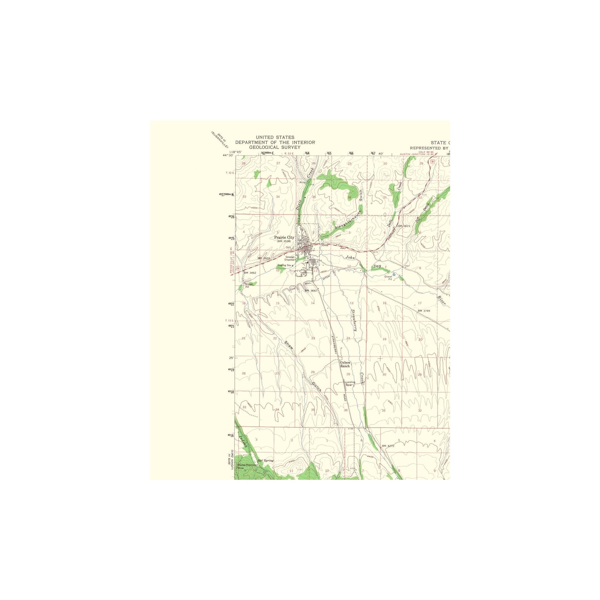 Topographical Map Print - Prairie City Oregon Quad - USGS 1968 - This is an exquisite full-color Reproduction printed on high-quality gloss paper, art paper or canvas.