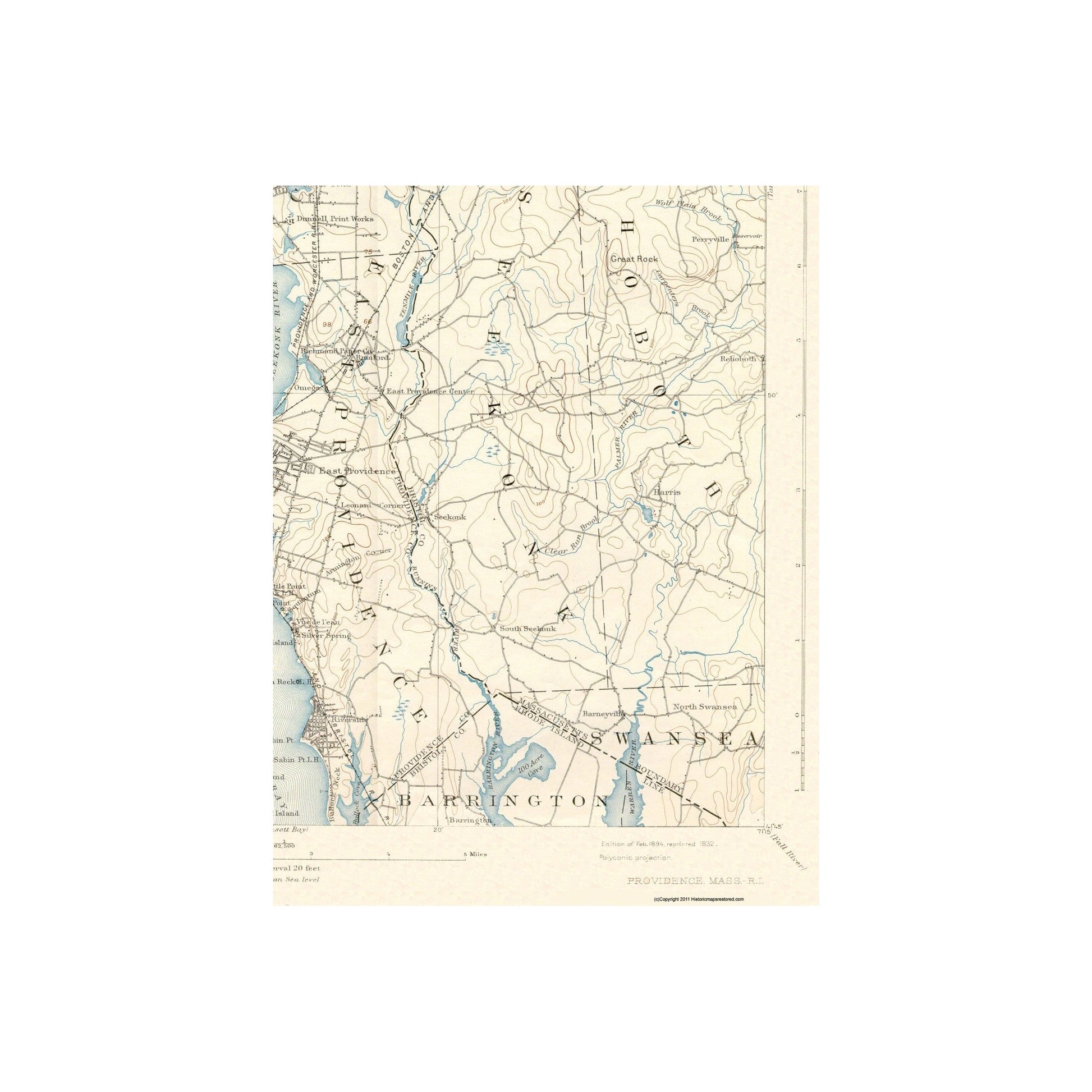 Topographical Map Print - Providence Massachusetts Quad - USGS 1894 - This is an exquisite full-color Reproduction printed on high-quality gloss paper, art paper or canvas.