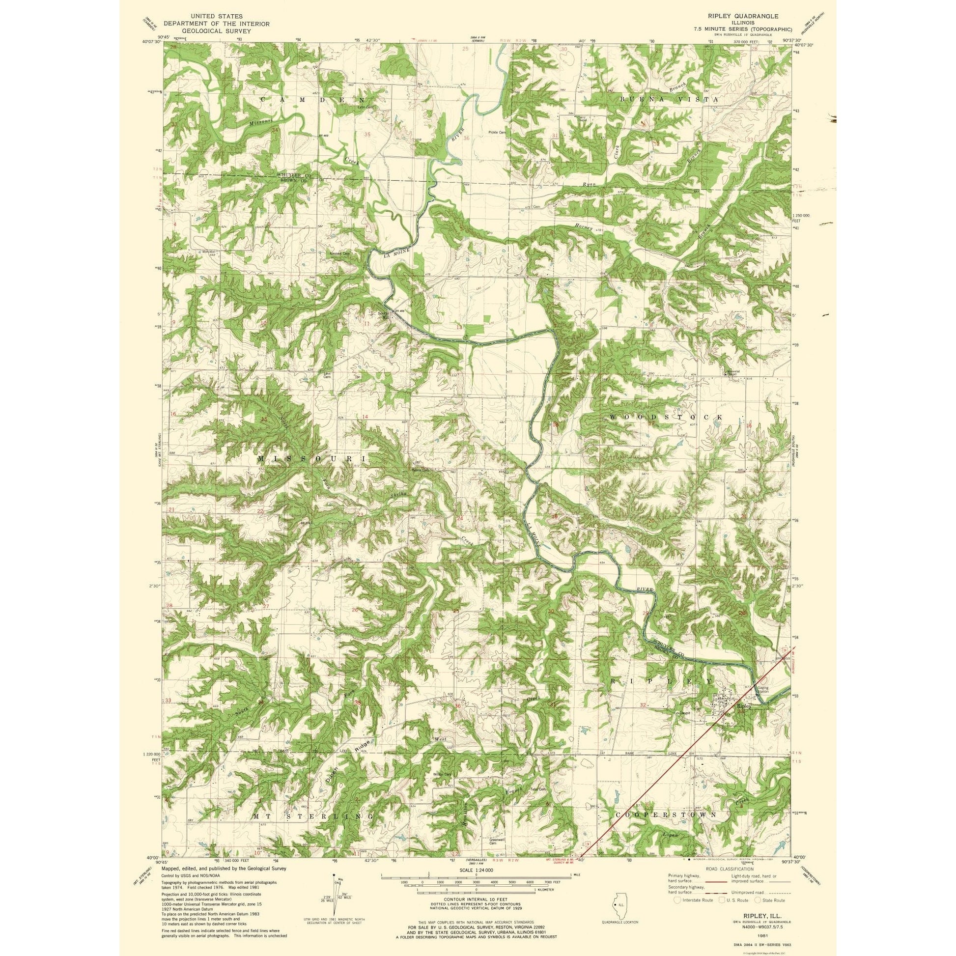 Historical Topographic Maps - Ripley Illinois Quad - USGS 1981 - This is an exquisite full-color Reproduction printed on high-quality gloss paper, art paper or canvas.