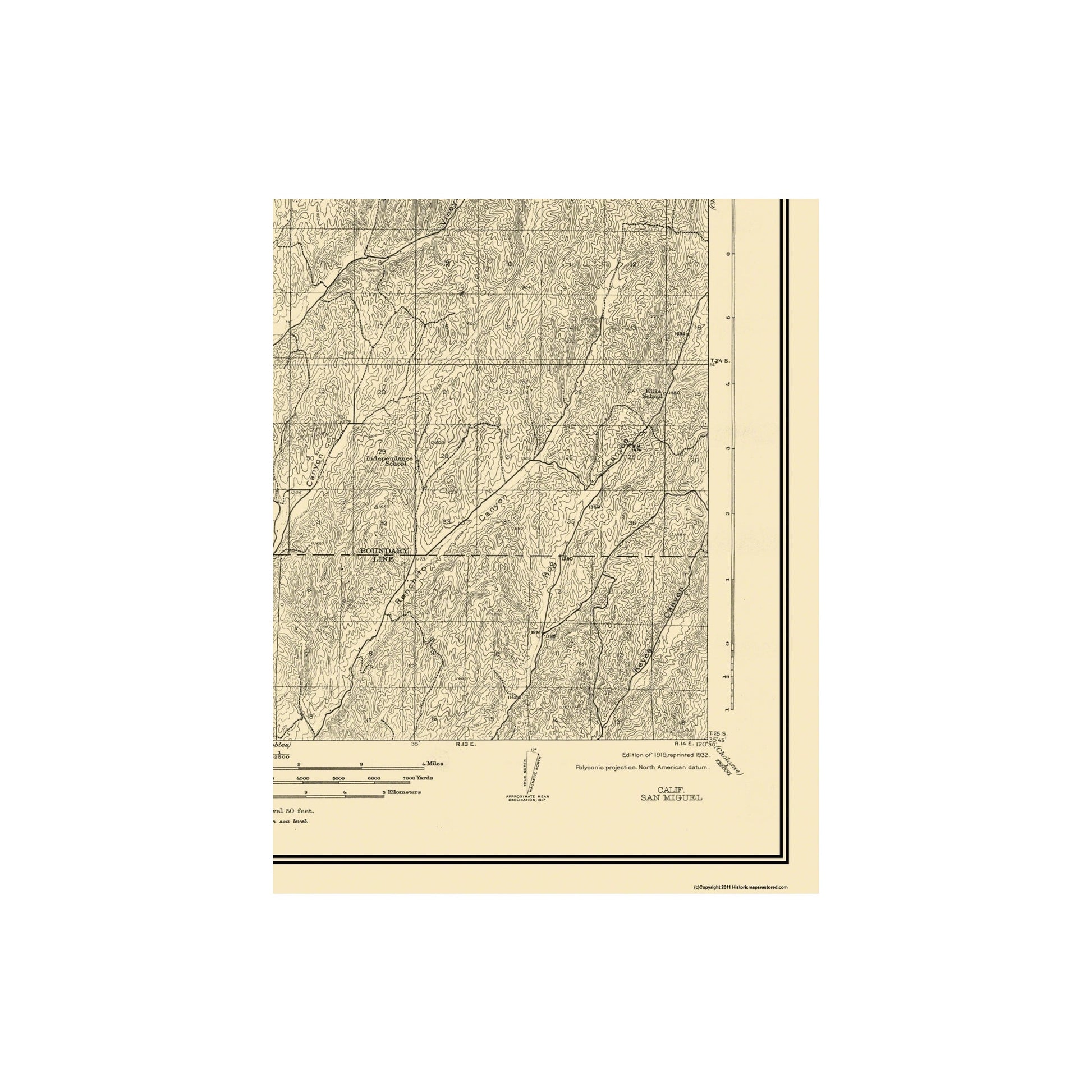 Topographical Map Print - San Miguel California Quad - USGS 1919 - This is an exquisite full-color Reproduction printed on high-quality gloss paper, art paper or canvas.