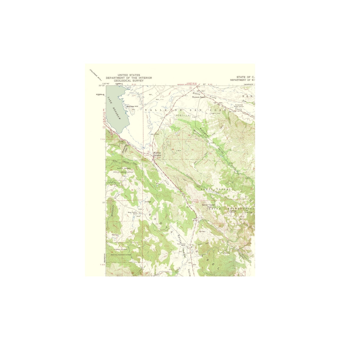 Topographical Map Print - Santa Ysabel California Quad - USGS 1962 - This is an exquisite full-color Reproduction printed on high-quality gloss paper, art paper or canvas.
