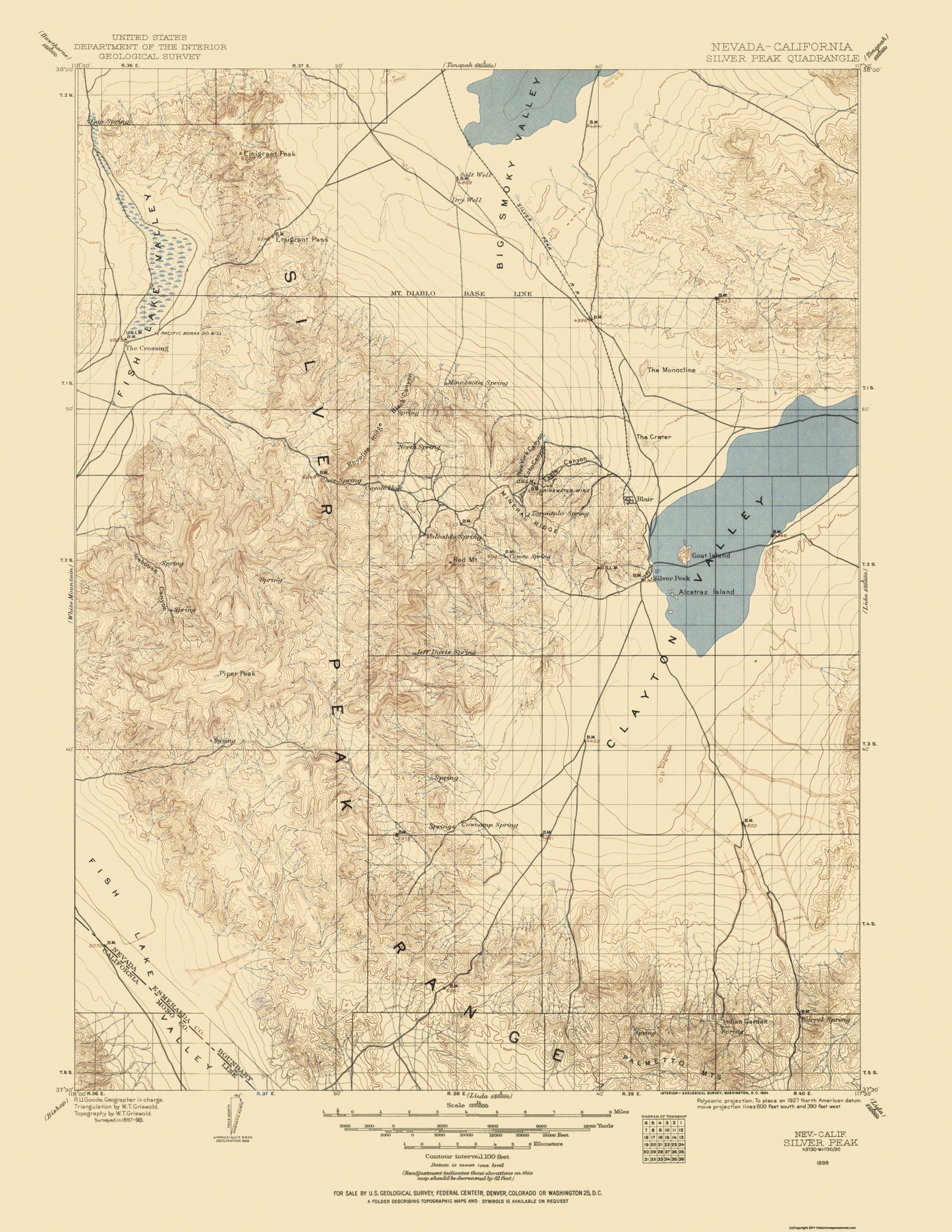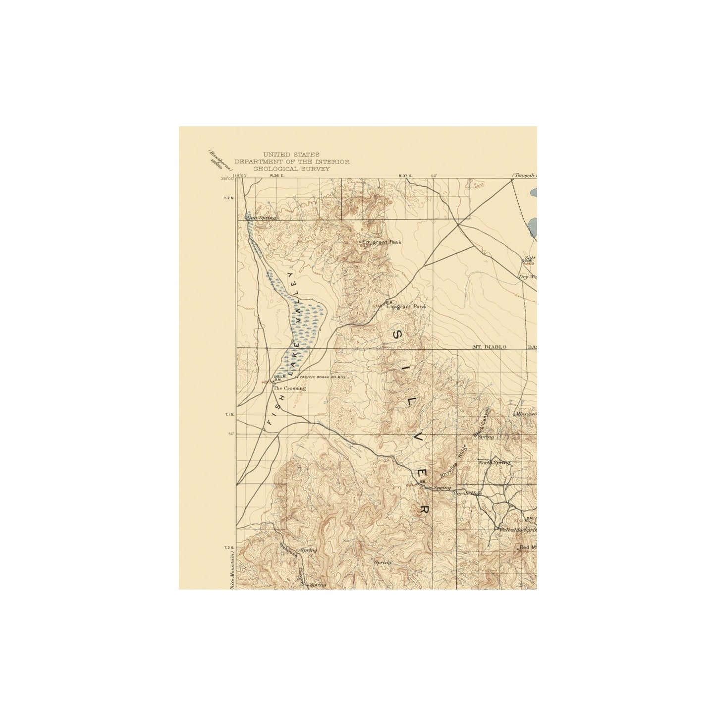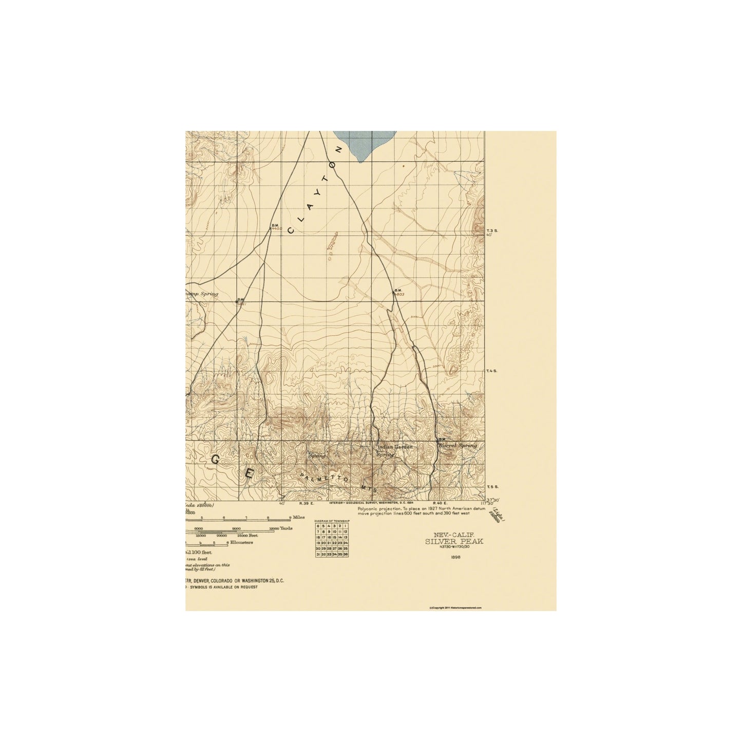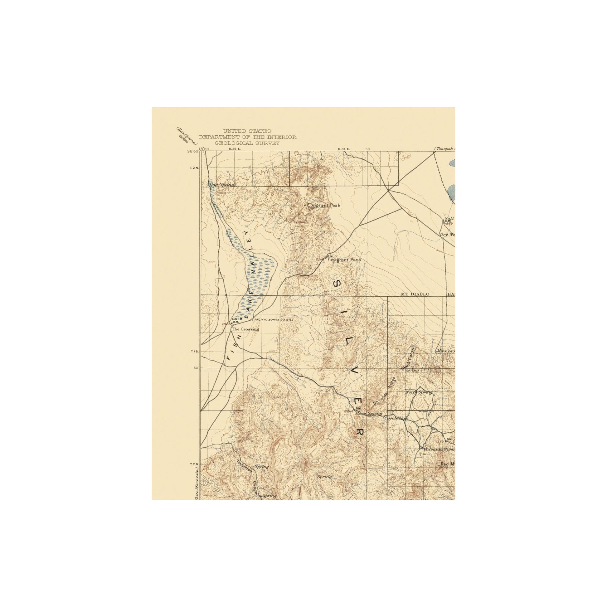 Topographical Map Print - Silver Peak Nevada Quad - USGS 1900 - This is an exquisite full-color Reproduction printed on high-quality gloss paper, art paper or canvas.