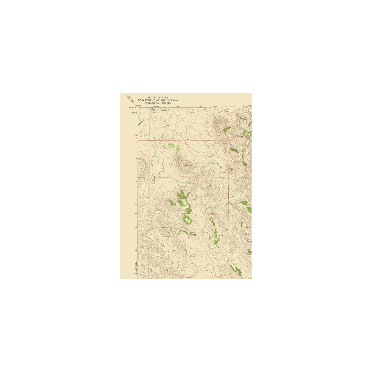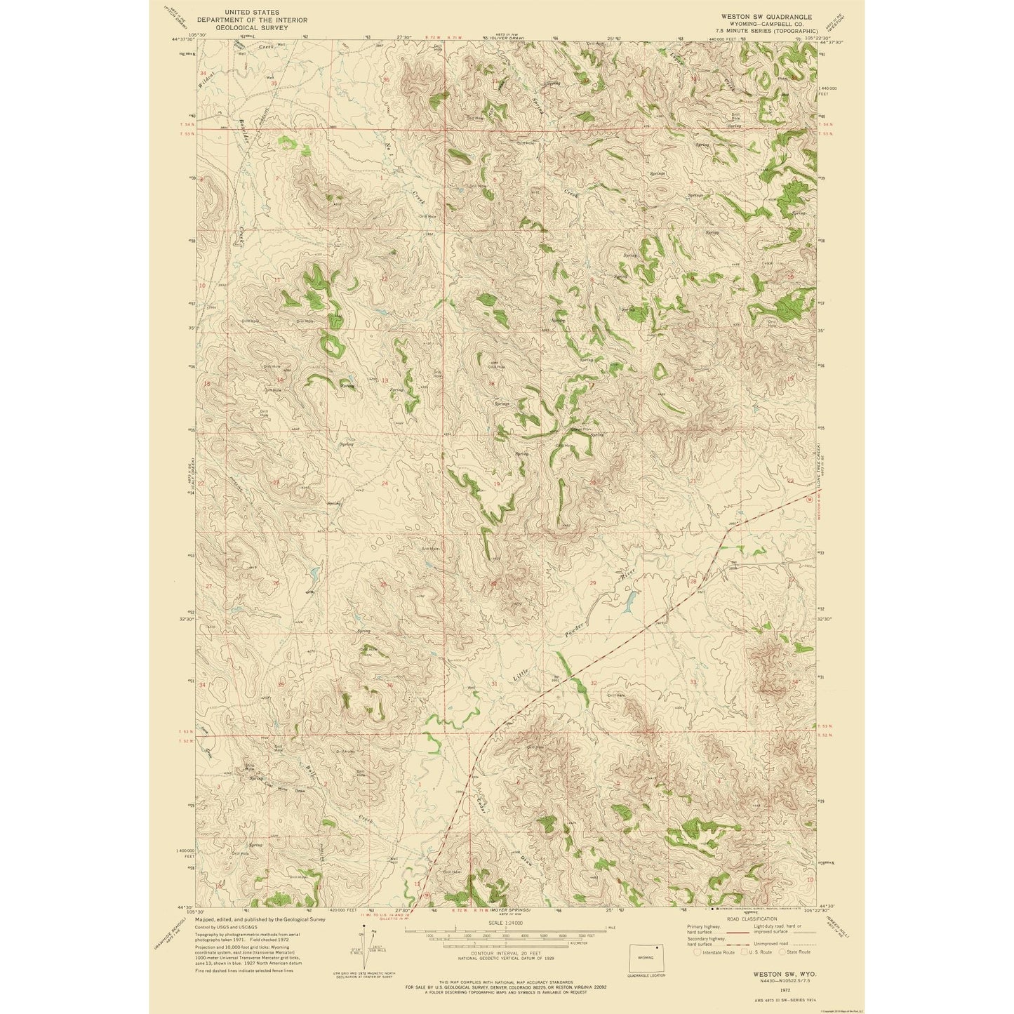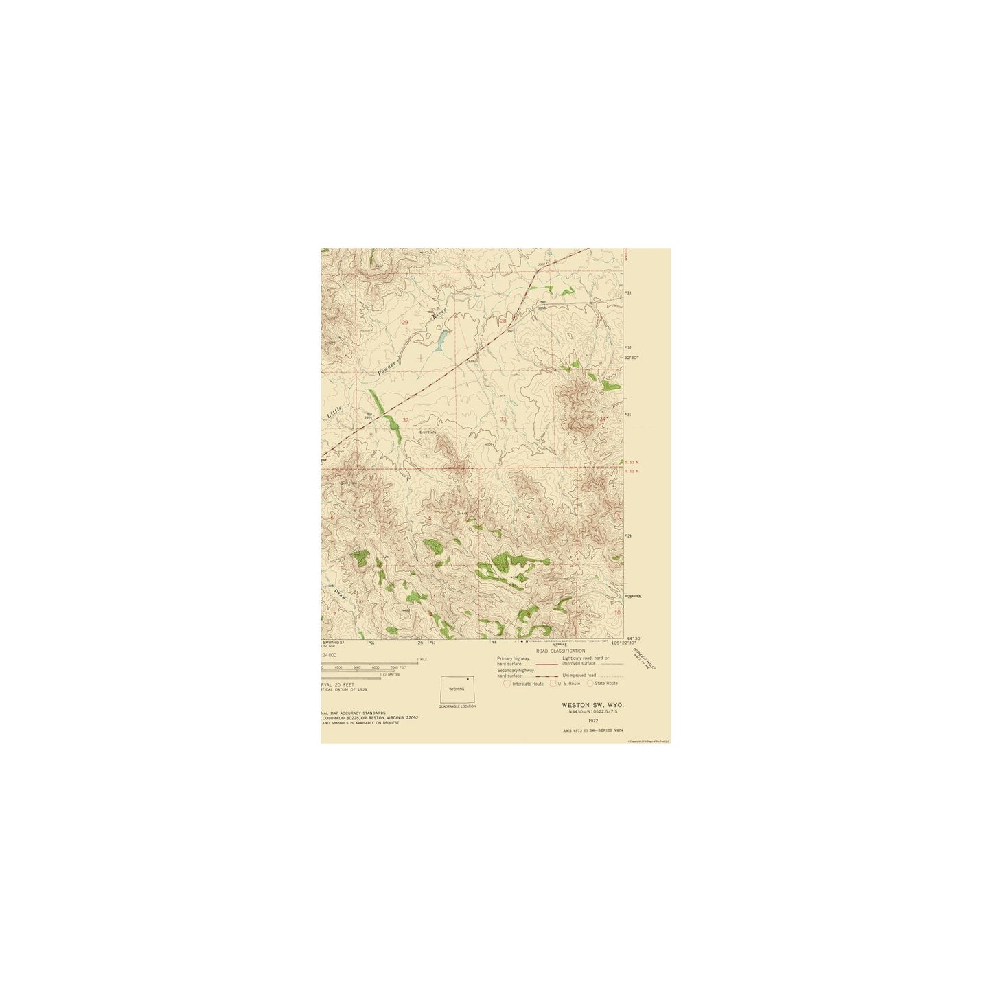 Historical Topographic Maps - South West Weston Wyoming Quad - USGS 1972 - This is an exquisite full-color Reproduction printed on high-quality gloss paper, art paper or canvas.