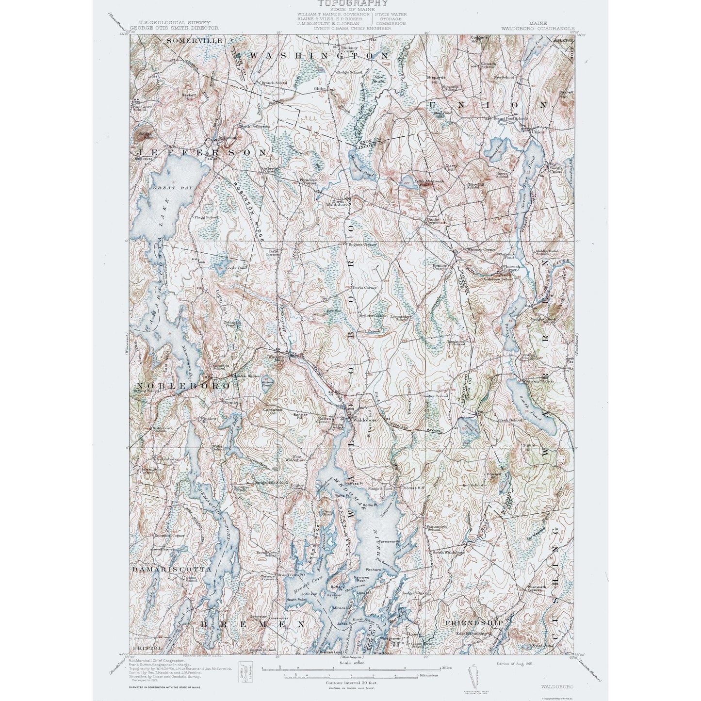 Historical Topographic Maps - Waldoboro Maine Quad - USGS 1915 - This is an exquisite full-color Reproduction printed on high-quality gloss paper, art paper or canvas.