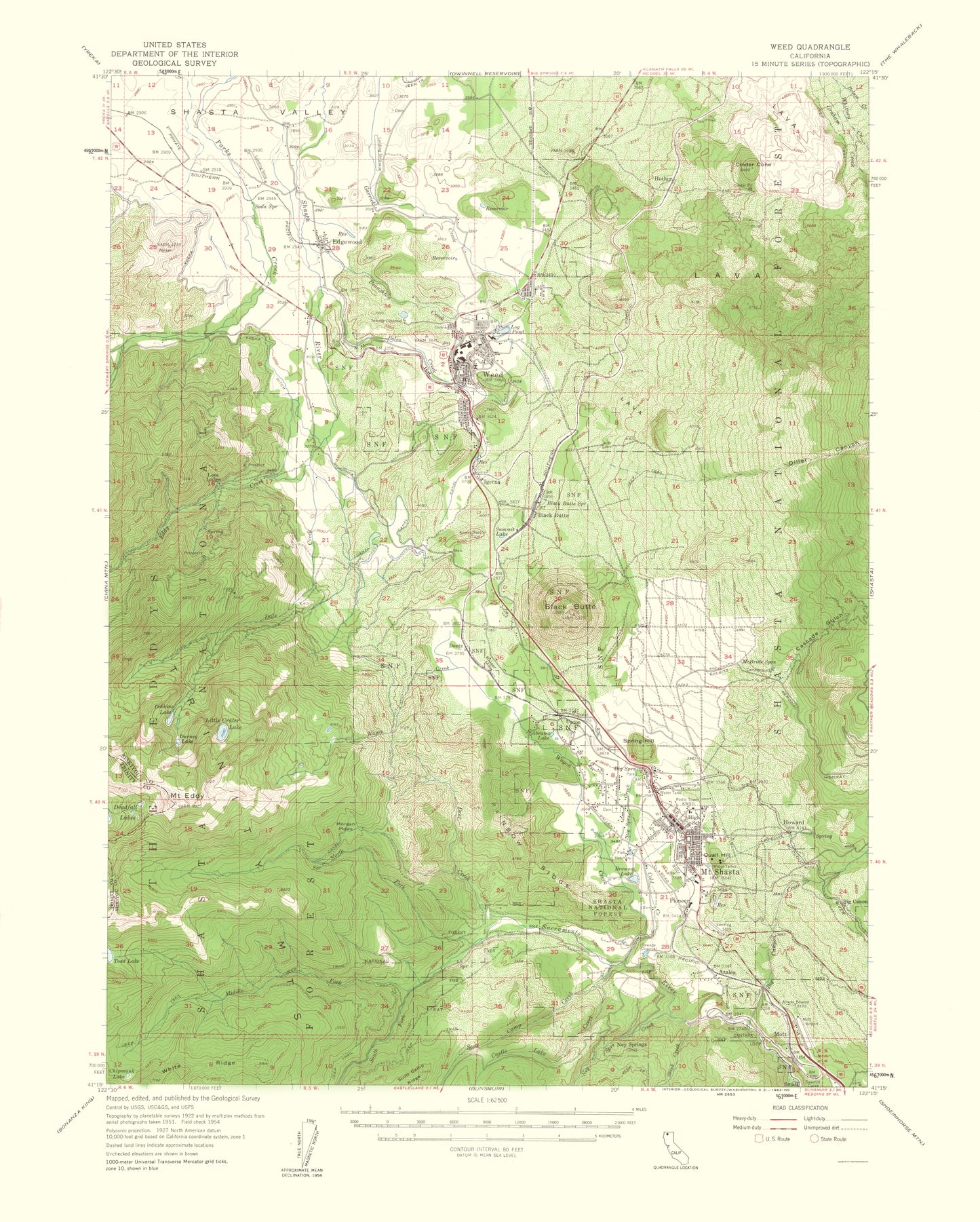 Topographical Map Print - Weed California Quad - USGS 1954 - This is an exquisite full-color Reproduction printed on high-quality gloss paper, art paper or canvas.