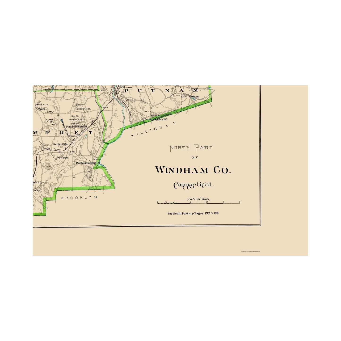 Topographical Map Print - Windham County Connecticut - Hurd 1893 - This is an exquisite full-color Reproduction printed on high-quality gloss paper, art paper or canvas.