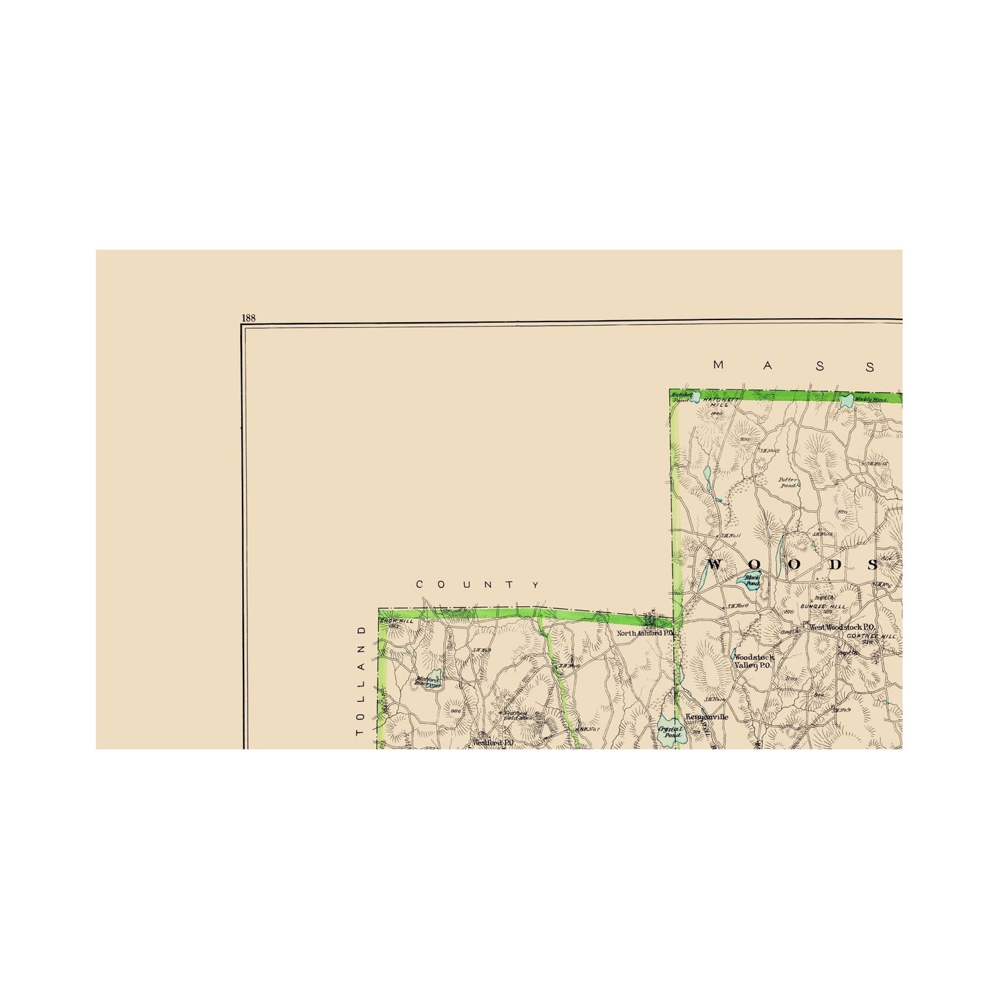 Sites and Townships Specific To This Map Are: Westford, West Ashford, Phoenixville, Kenyonville, Elliott, Pomfret, Woodstock, Harrisville, Putnam, Quaddick and Wilsonville among many others.