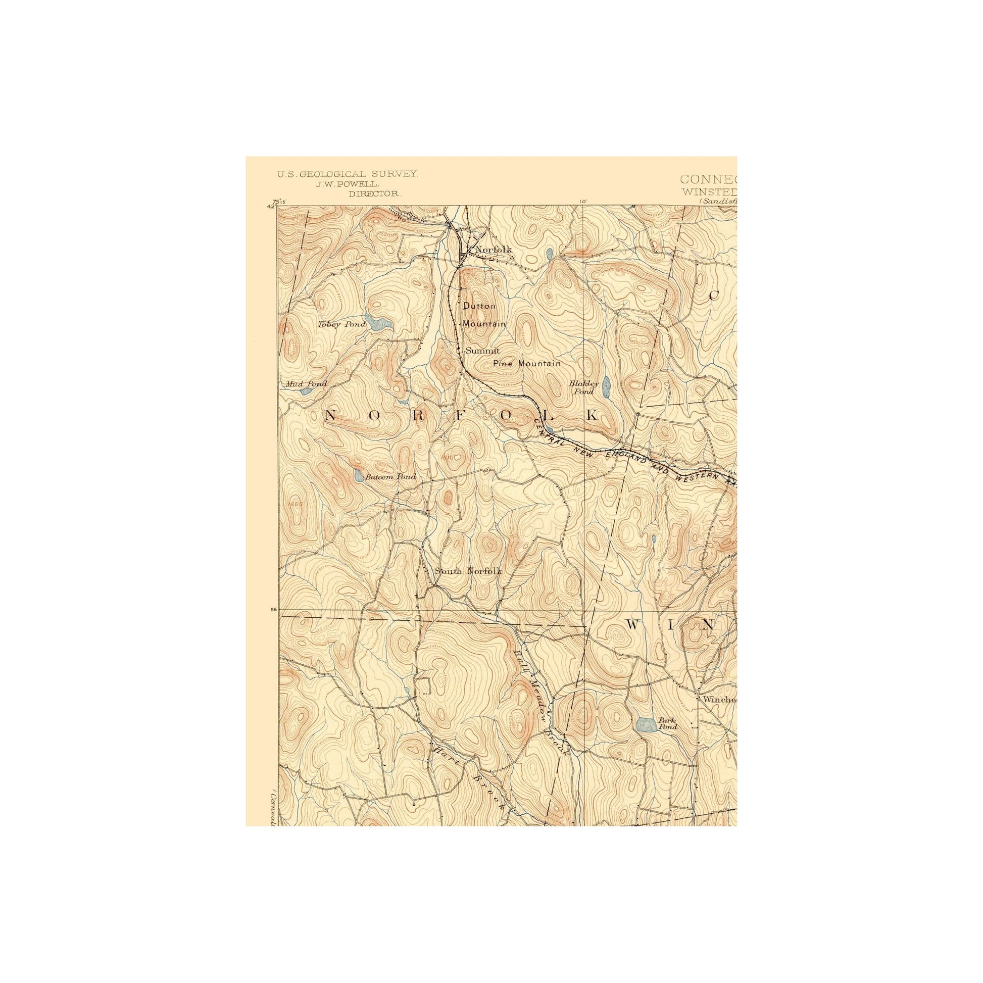 Topographical Map Print - Winsted Connecticut Sheet - USGS 1892 - This is an exquisite full-color Reproduction printed on high-quality gloss paper, art paper or canvas.
